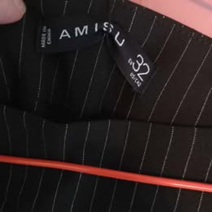 Pantalon femme Marque Amisu Motif rayures Matières 22% polyester, 75% viscose et 3% elasthane Taille 32 Couleurs noir et blanc Fermetures zipper sur le côté Dimensions approximative 110cm de long : largeur à la taille 32cm Neuf avec étiquettes