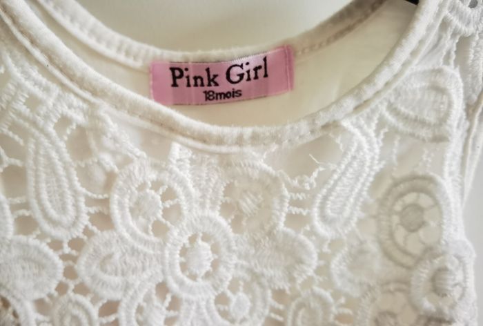 Tres belle robe 18 mois Effet dentelle en haut Voilage tule en bas avec des pétales pour décoration Photo 3: défauts mais je ne sais pas si c'est un défaut réellement, je l'avais acheté comme cela