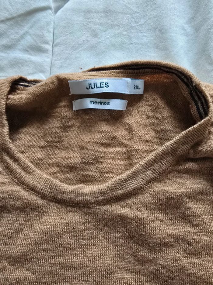 Découvrez ce pull col rond marron pour homme de la marque Jules, en taille XL. Confectionné en 100% laine mérinos, ce modèle offre une douceur incomparable, une chaleur légère et un style intemporel, parfait pour les journées fraîches.