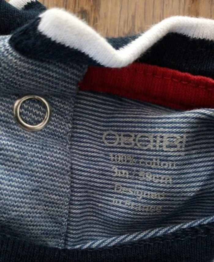 #stef62180_troismois Vend un tee-shirt manches longues de marque obaibi Couleur bleu et blanc rayures Fermeture pression dans le dos Taille 3 mois #obaibi3mois #obaibi #3moisobaibi