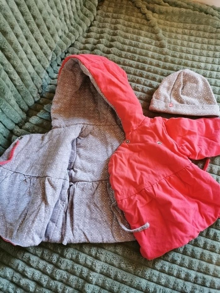 Manteau porte feuille couleur corail doublé donc très epais avec bonnet Très bon état Ni trou ni tâche