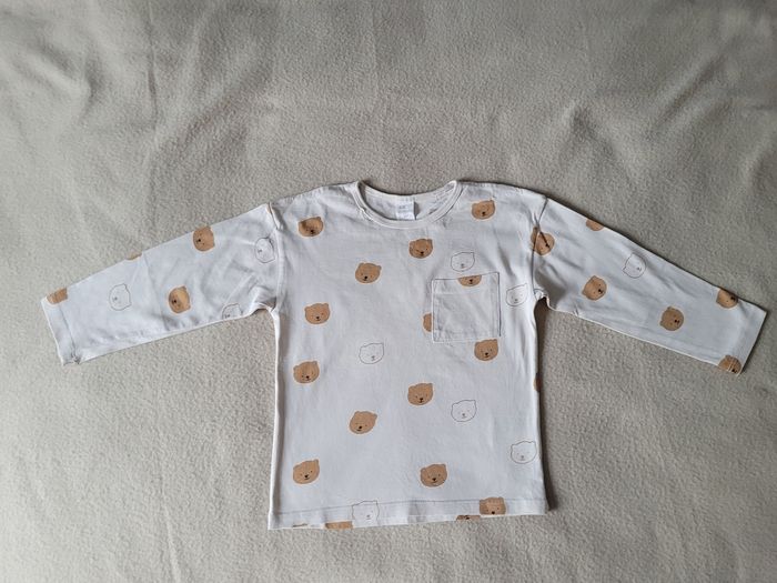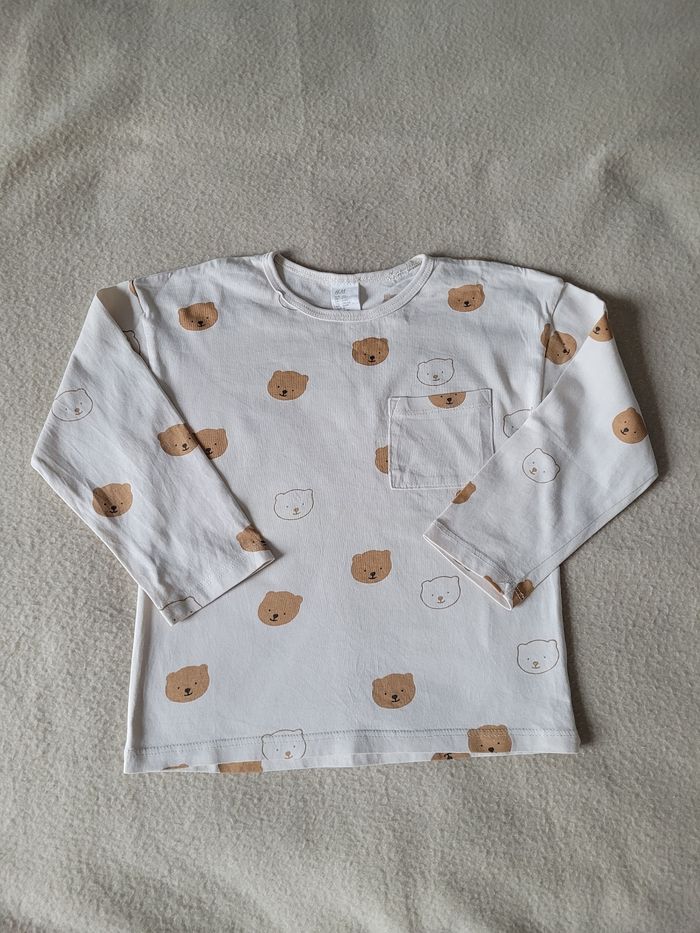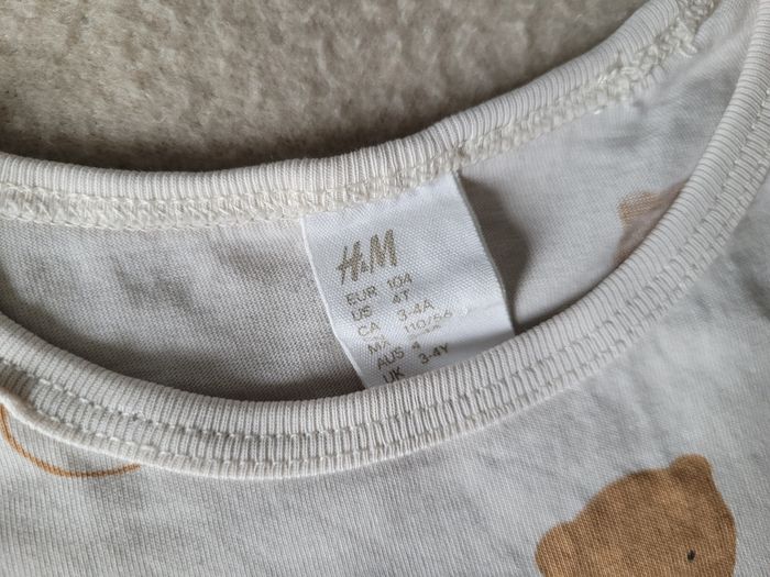 T-shirt manches longues H&M 4 ans 104 cm Très bon état Beige motifs oursons