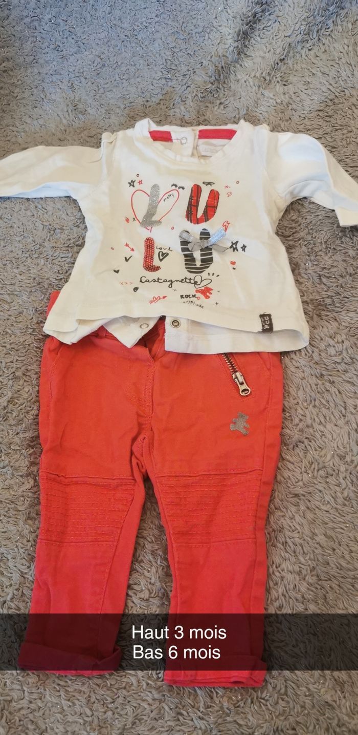 État neuf porté 1 fois Haut manches longues avec pression dans le dos taille 3 mois Pantalon taille 6 mois