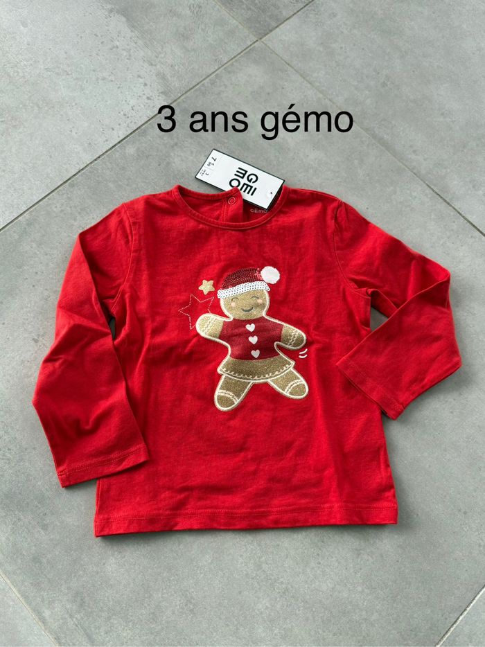 Tee shirt manches longues Noël 3 ans gémo neuf