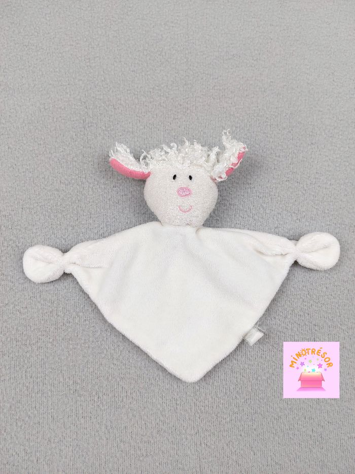 Doudou plat triangle mouton blanc rose 16 cm luminou tête luminescente