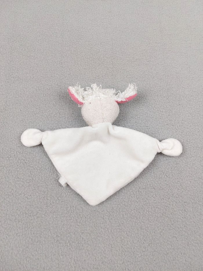 Doudou plat triangle mouton blanc rose 16 cm luminou tête luminescente Très bon état - étiquette effacée, toute petite tâche au dos Envoi rapide Réf A10627