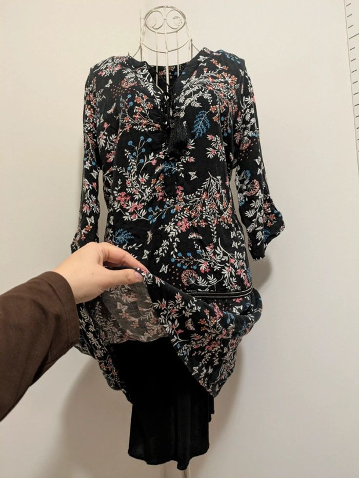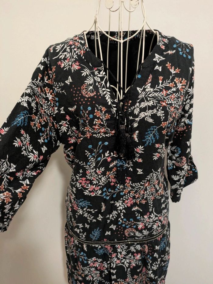 Très bon état - Conforme aux photos. Un petit défaut derrière l'épaule droite (voir photo) Manches 3/4. Doublée sur toute la longueur. Couleur du fond: bleu marine foncé Grosses réductions sur les lots et beaucoup d'articles dans mon dressing ! Profitez en ! 🤗😉 Dressing trié par taille -> #miladys40 Pour les autres tailles: voir la liste dans la description de mon profil, visitez mon dressing ou demandez moi 😉 #tunique #breal #marine #fleurs #robecourte