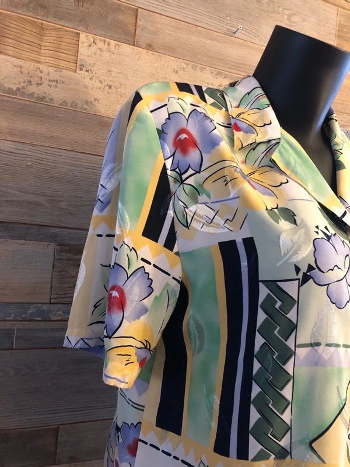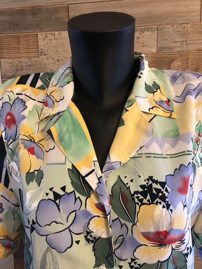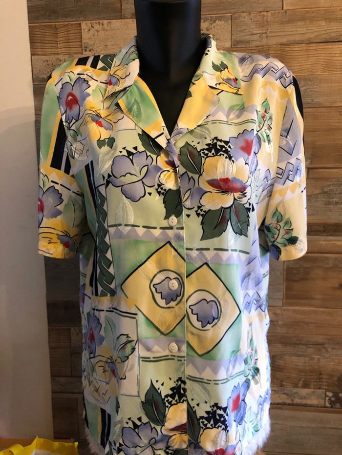 Jolie chemisier vintage colorer Avec épaulettes ⚠️⚠️Sans étiquettes taille voir mesure en photo #remisesurleslots #vintage #fleuri #chemisier #chemiseclasse