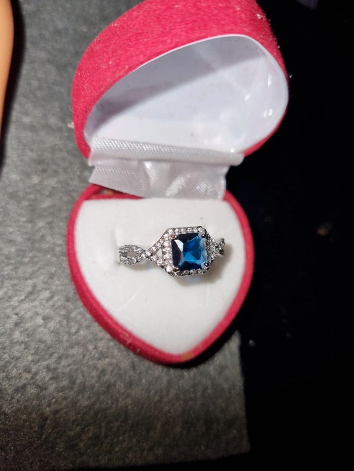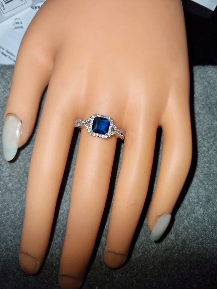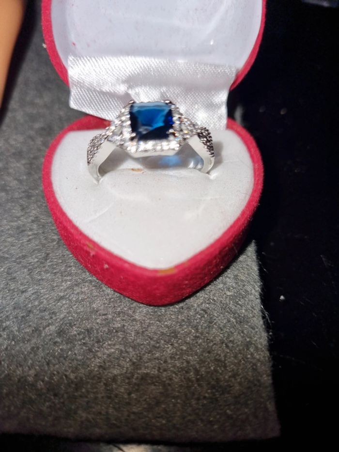 Très jolie bague en saphir synthétique bleu très classe avec des brillants