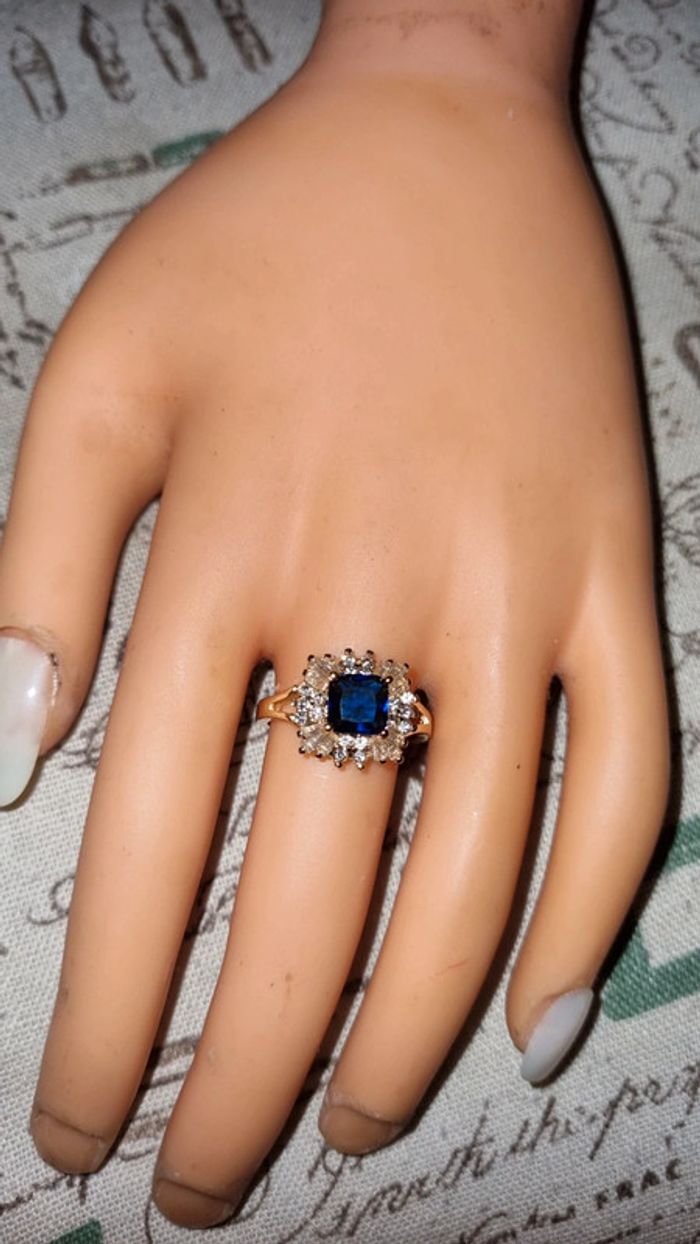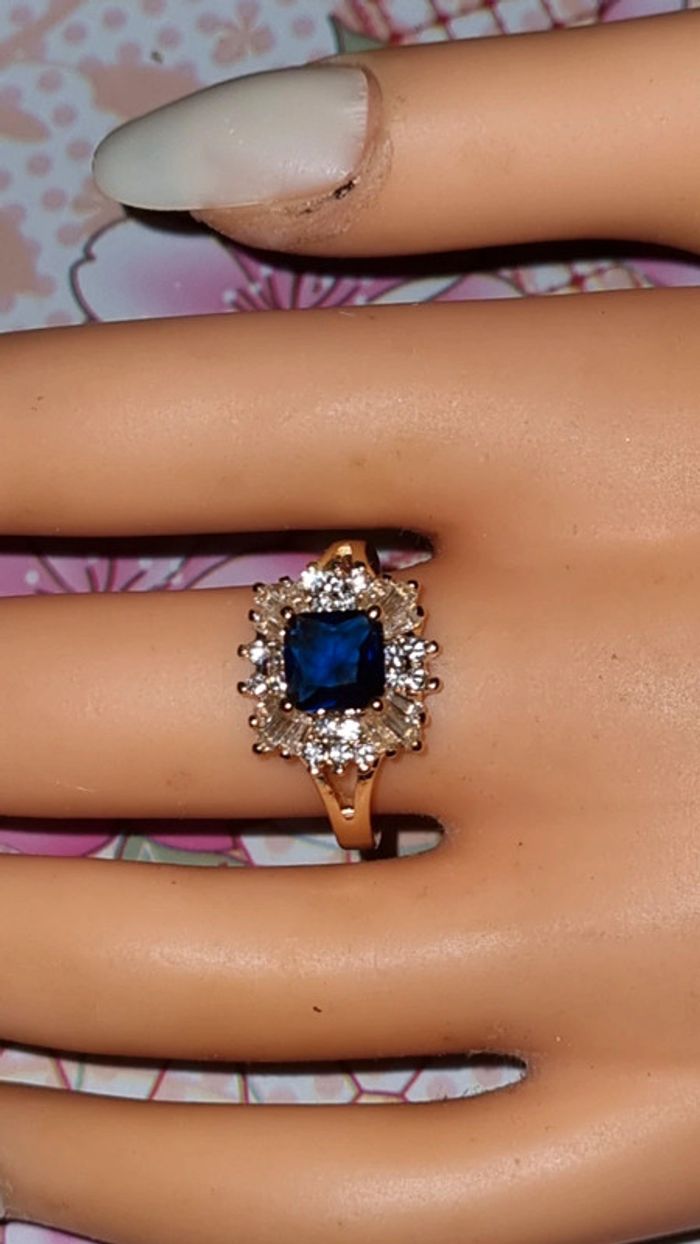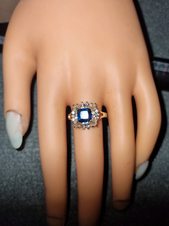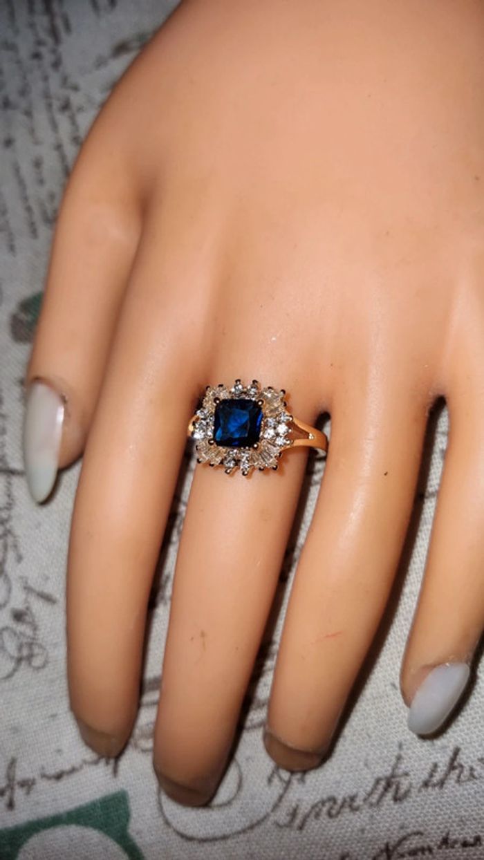 Jolie bague bleu d'Azur incrustée de diamant zircon très brillante à la lumière du jours et de la nuit magnifique et très chics