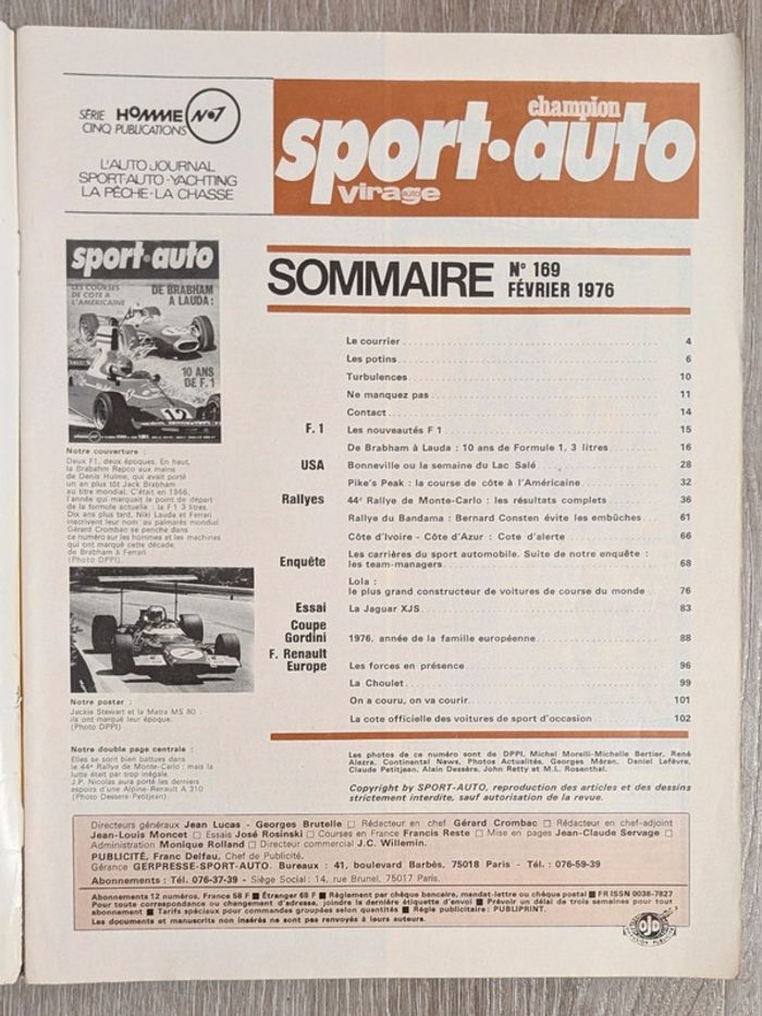 #_SportAuto_#_F1_ Numéro 169 (février 1976) 10 ans de Formule 1, Pike's Peak, rallye de Monte Carlo, Lola, Jaguar XJS... 100 pages Couverture un peu abîmée