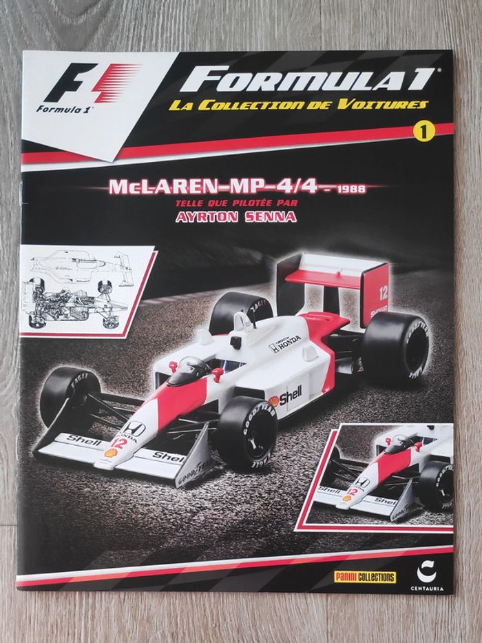 Fascicule collection de voitures Formule 1 numéro 1 #_F1_ McLaren MP 4/4 (1988) Ayrton Senna Saison F1 1988, circuit de Silverstone, premier championnat du monde en 1950 22 pages