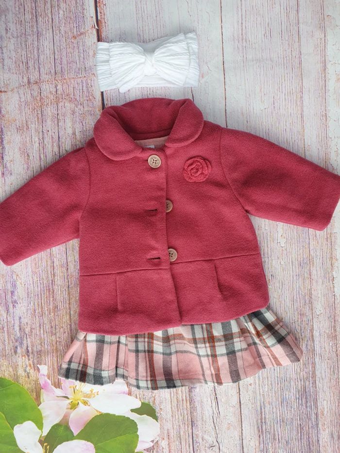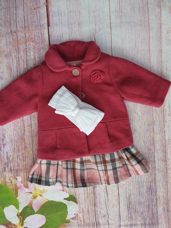 Robe, manteau chaud et bandeau assorti Taille 3 mois