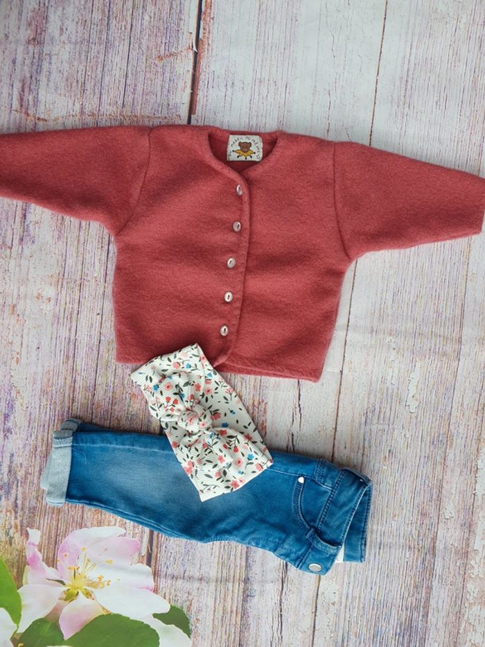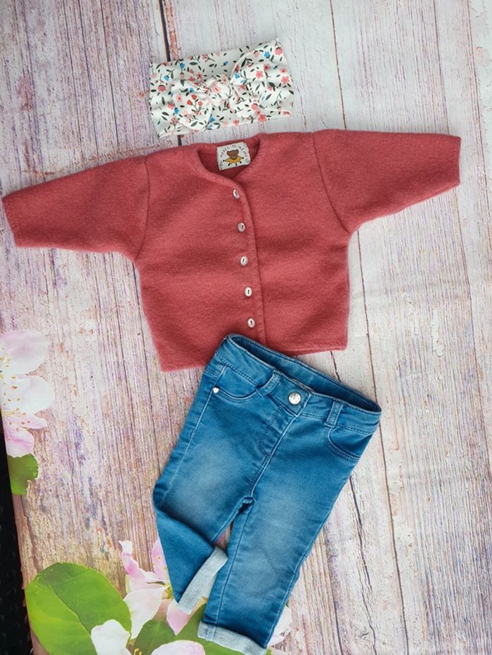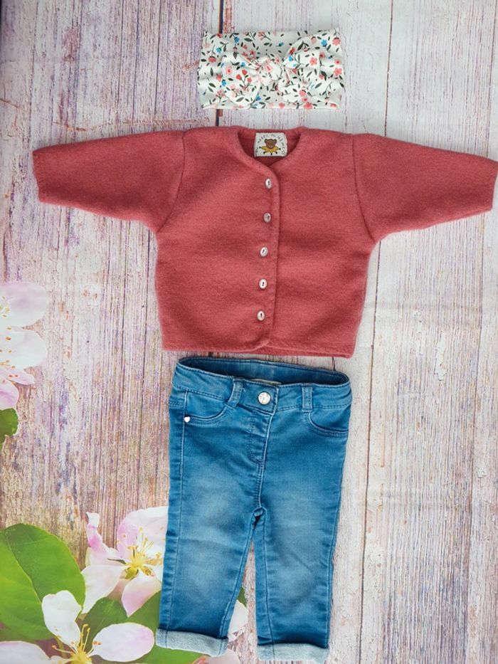 Gilet en laine, pantalon jeans et bandeau assorti Taille 3 mois