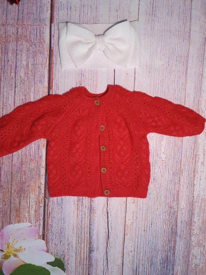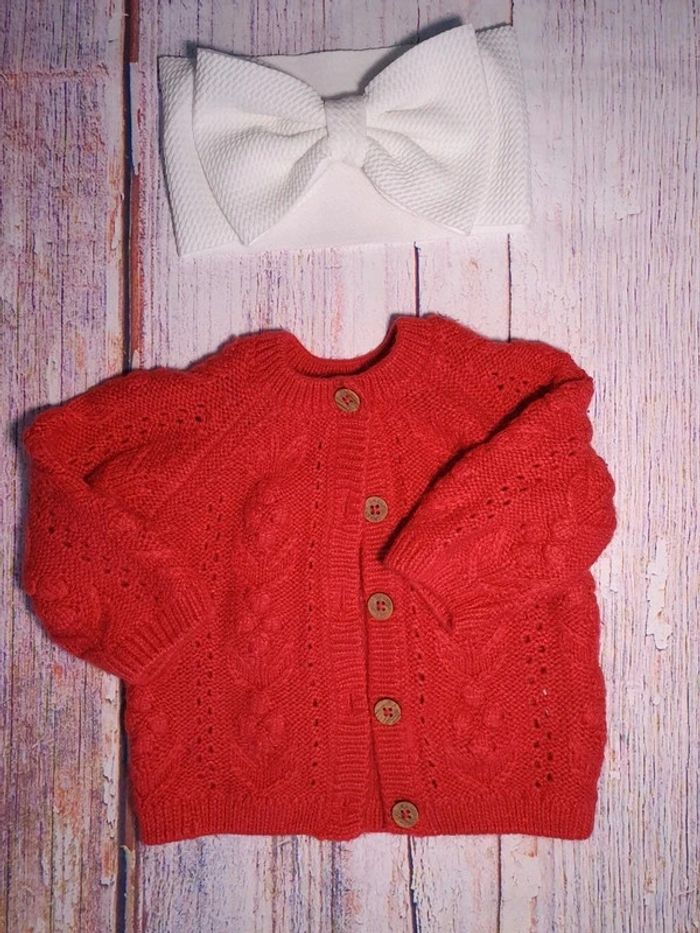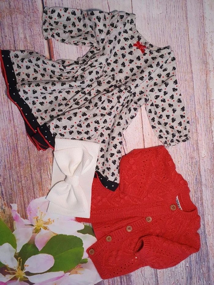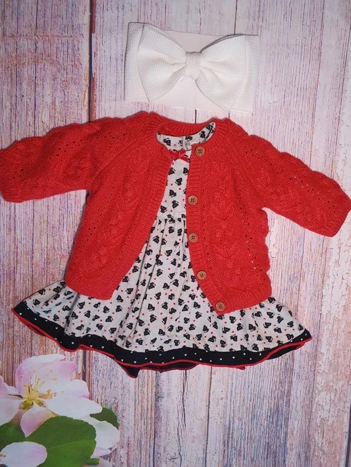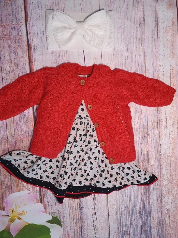 Robe manches longues, un gilet en maille et un bandeau Taille 3 mois