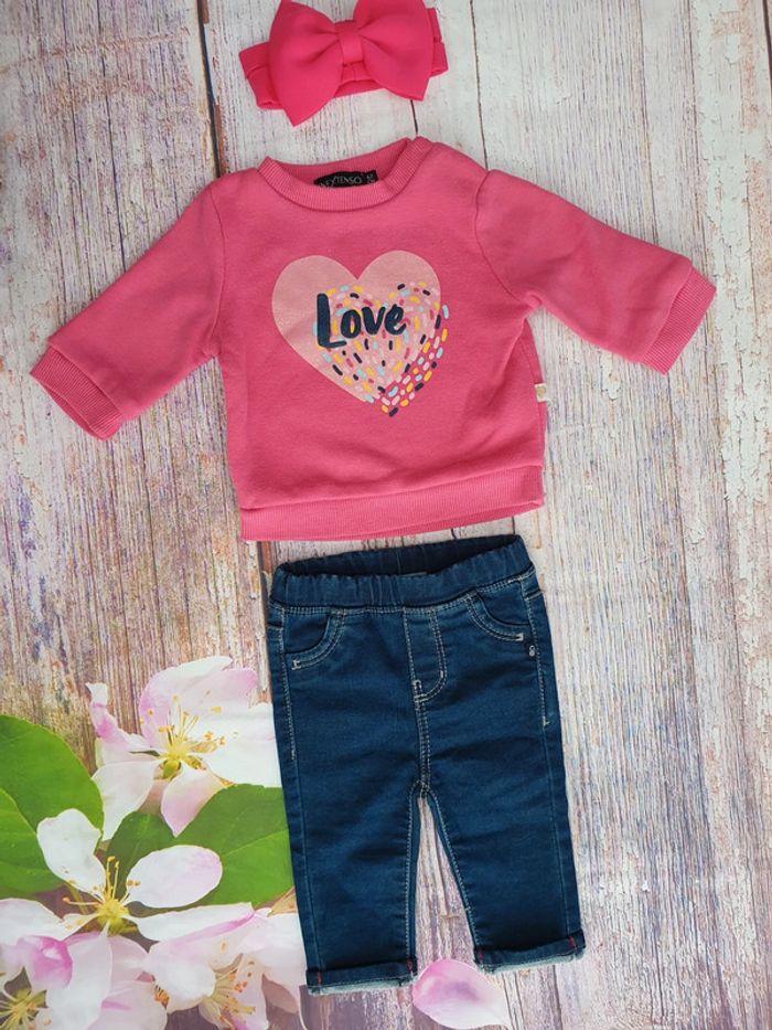 Pull chaud, pantalon jeans et bandeau Taille 3 mois