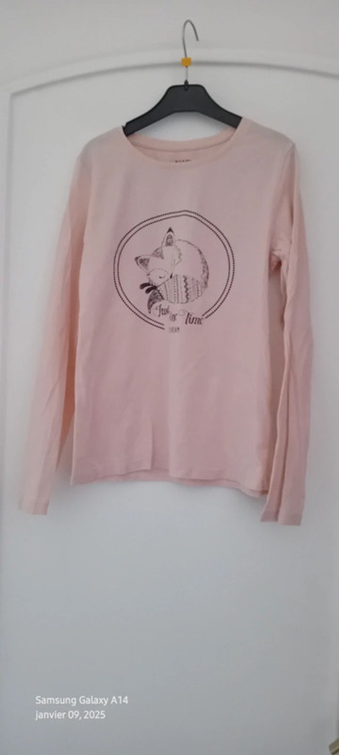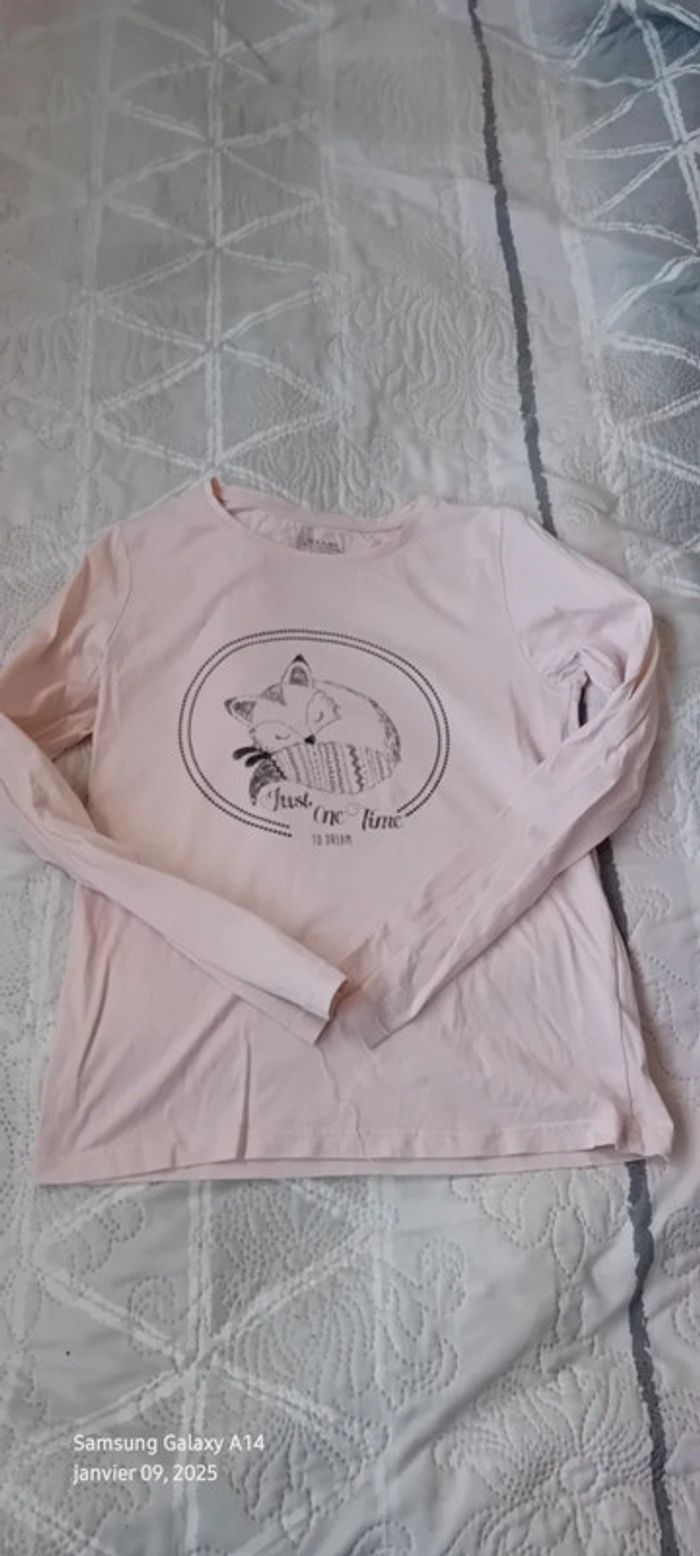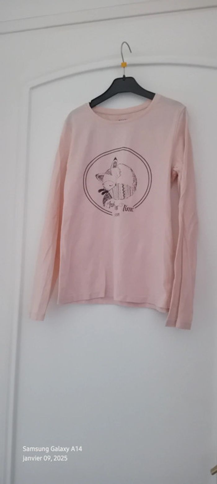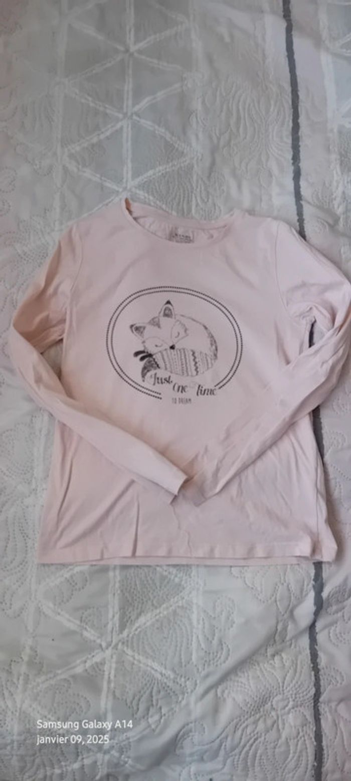 Tee-shirt manches longues en coton biologique léger motif renard longueur 48 cm largeur aisselles à aisselles 35 cm largeur épaules 29 cm longueur manches 49 cm peu porté en très bon état #midole #midolefille #midolefille10ans #teeshirtfille10ans #teeshirtcitonbio #cotonbiologique #cotonbiologiquekiabi #kiabi #renard #motifrenard