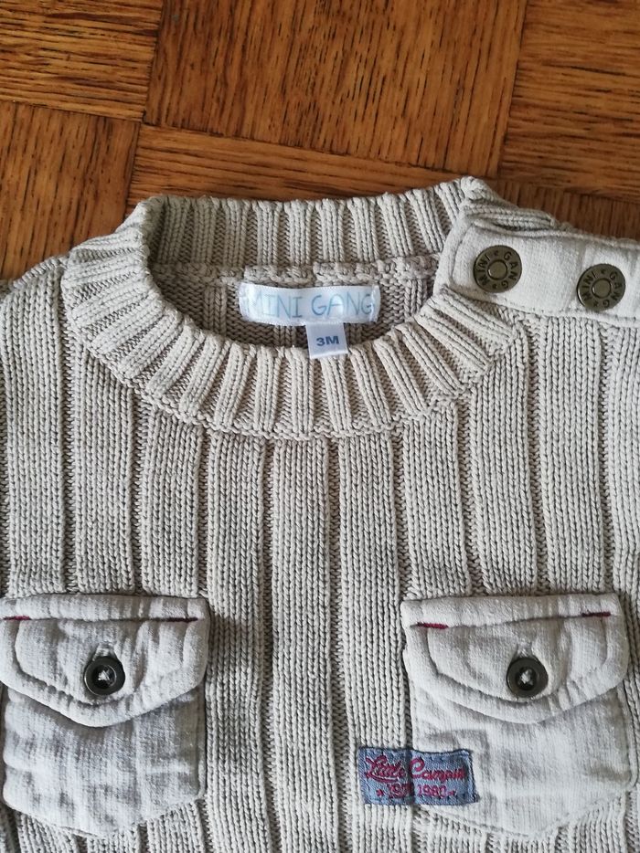 Pull beige garçon 3 mois mini gang - photo numéro 2