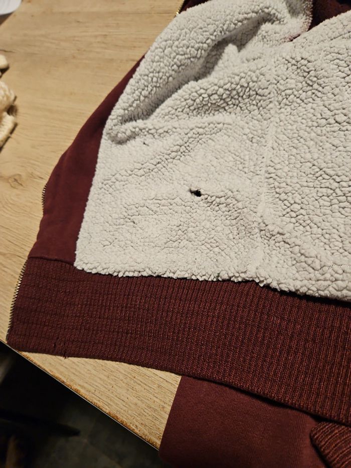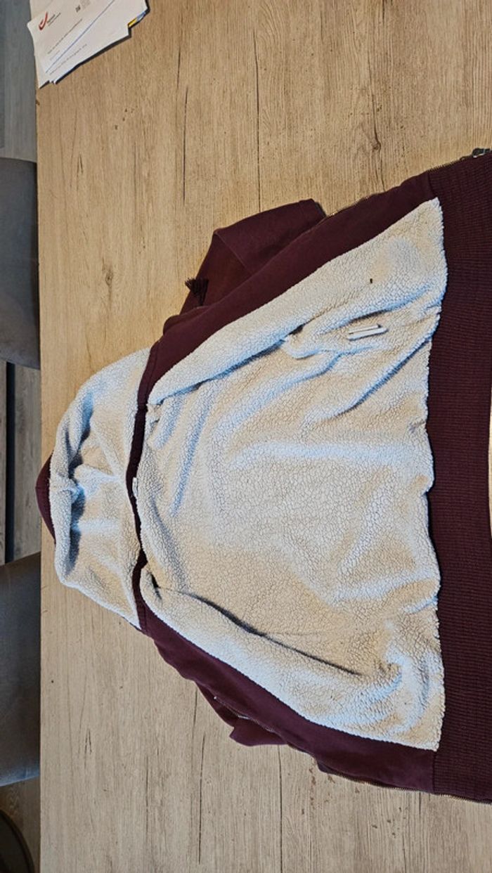 Gilet à capuche mis mais encore bien. Il mesure 38 cm d épaule à épaule. 45 cm d aisselle à aisselle. Il a une longueur de 53 cm et une largeur de 38 cm. Il se ferme par 1 tirette. Poche centrale en 2 parties. Attention, 2 défauts: 1 tou dans la doublure blanche et 1 accro dans la doublure bordeau. Ne se voit pas quand c est porté. Convienr pour du 14/16 ans ou du XS/S #deborahtock_14ans #deborahtock_16ans #deborahtock_femmeXS #deborahtock_femmeS