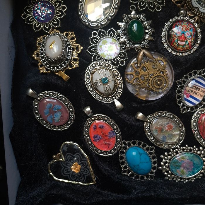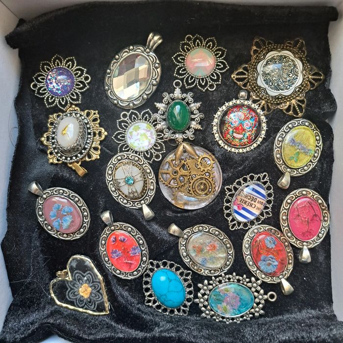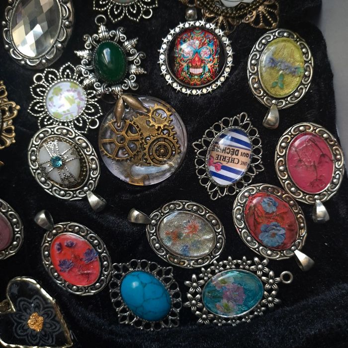 Lot de pendentifs acier inoxydable multicolore Chic moderne certains en résine d'autres en verre pour réaliser des magnifiques créations Unique