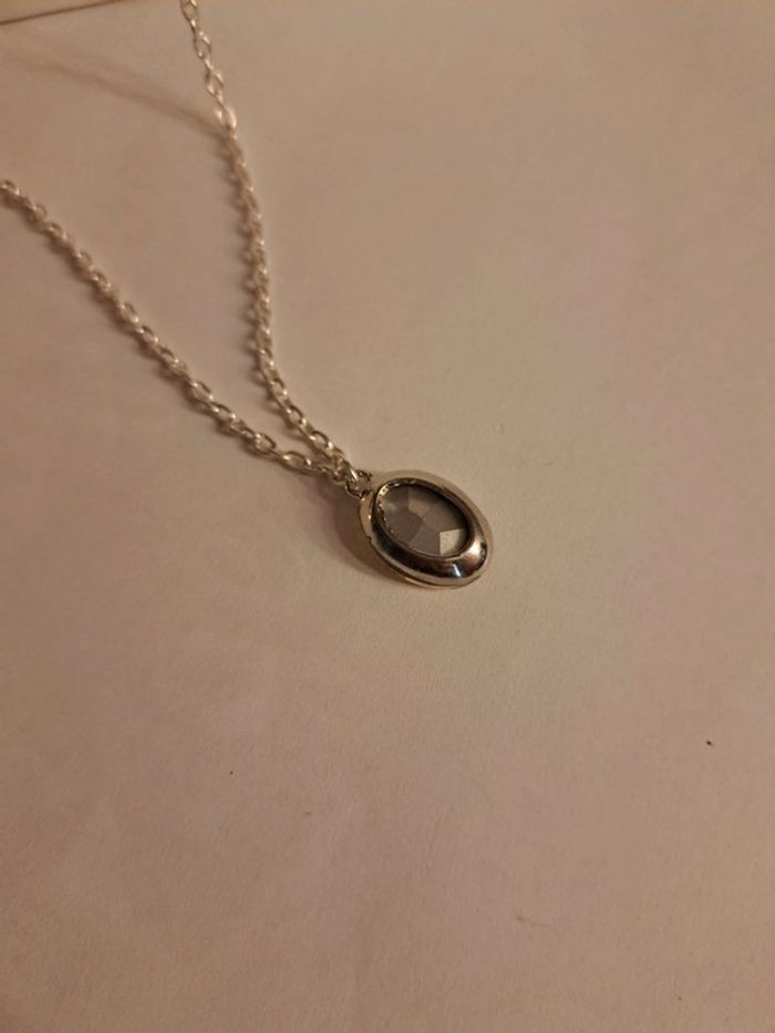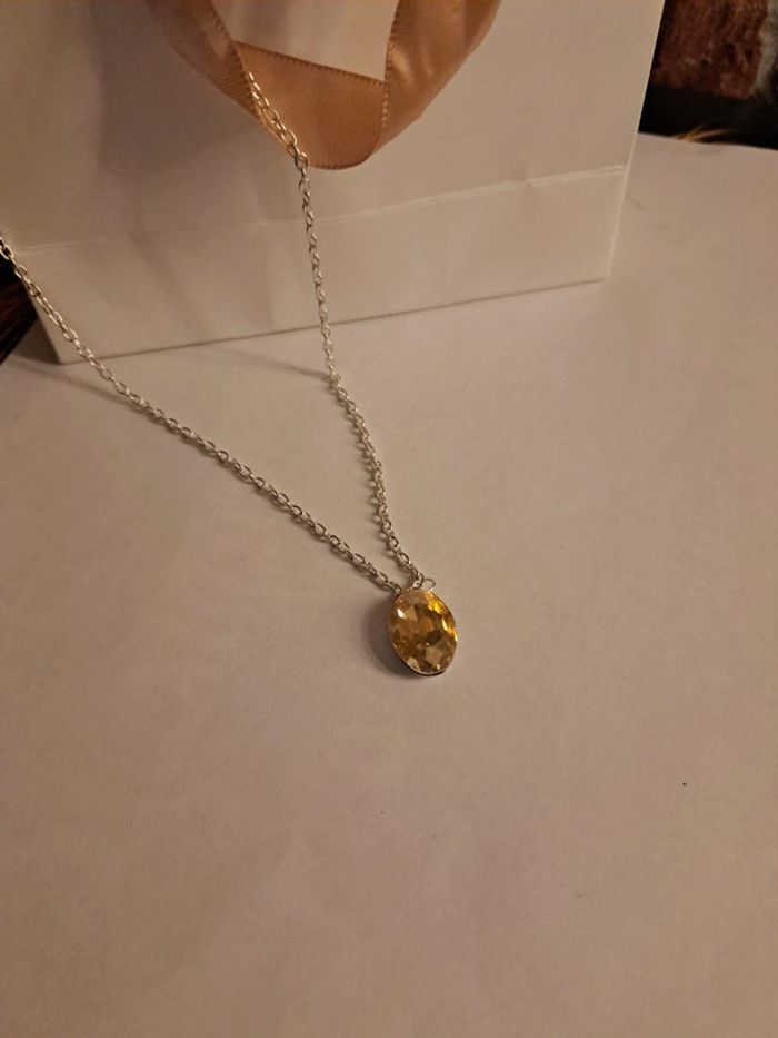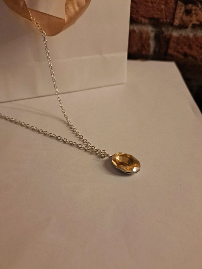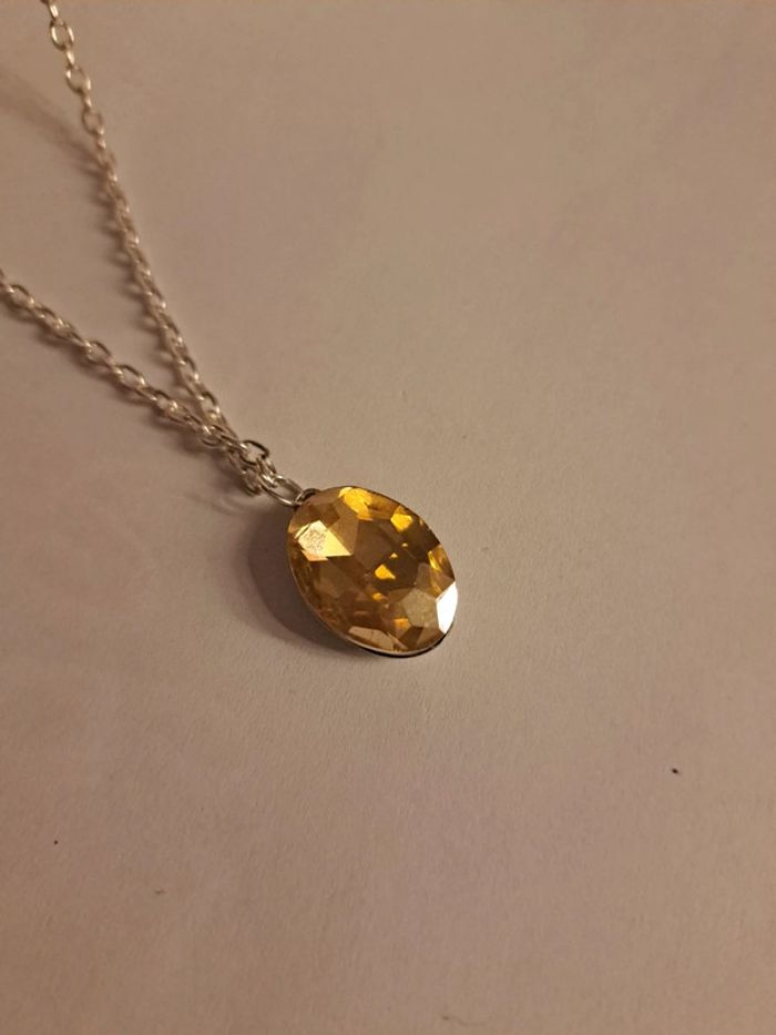 Jolie collier argenté acier inoxydable avec pendentif ovale strass orange Tout en finesse et élégant