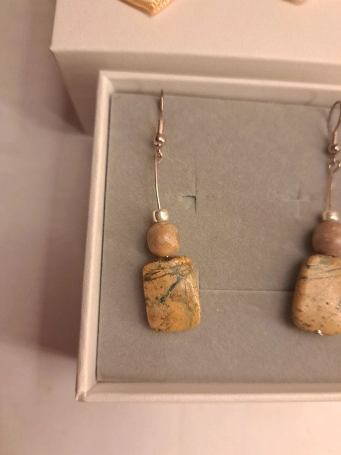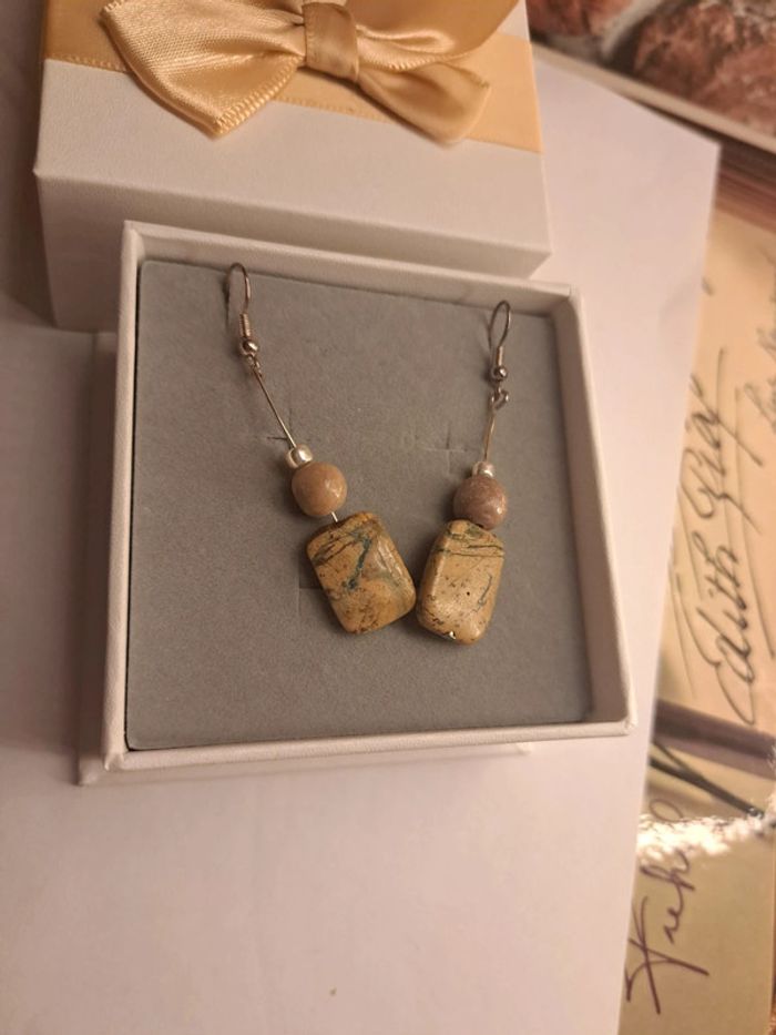 Boucles d'oreilles pendante marron argenté - photo numéro 10