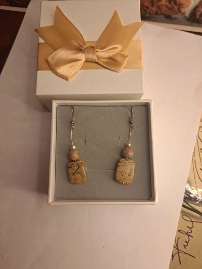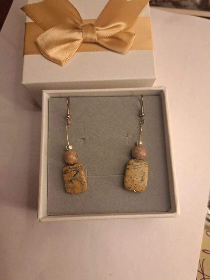 Boucles d'oreilles pendante marron argenté