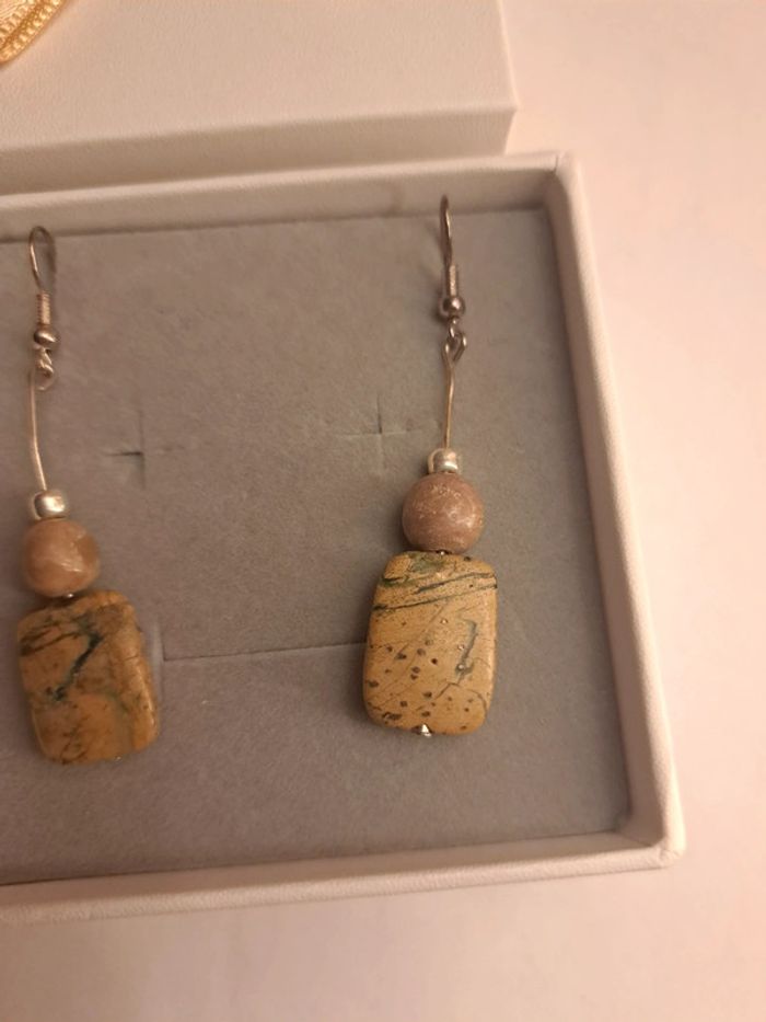 Boucles d'oreilles pendante marron argenté - photo numéro 9