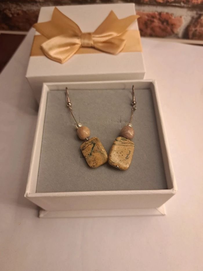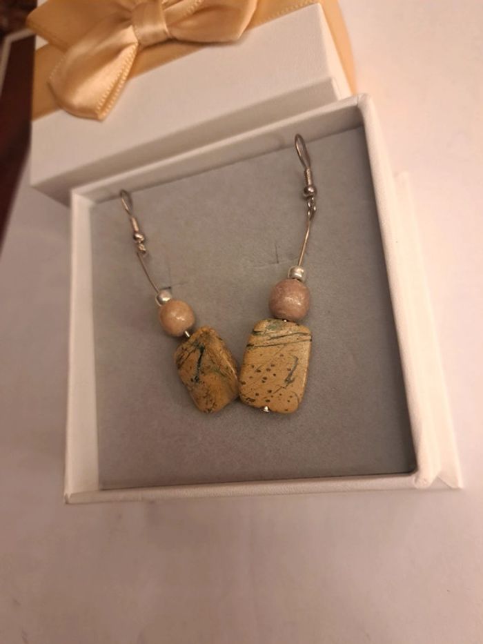 Boucles d'oreilles pendante marron argenté - photo numéro 1