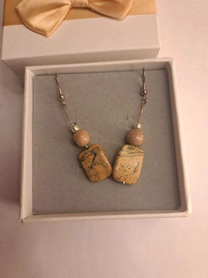 Boucles d'oreilles pendante marron argenté - photo numéro 3
