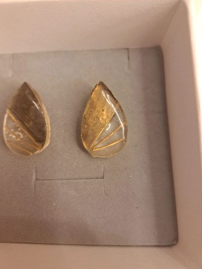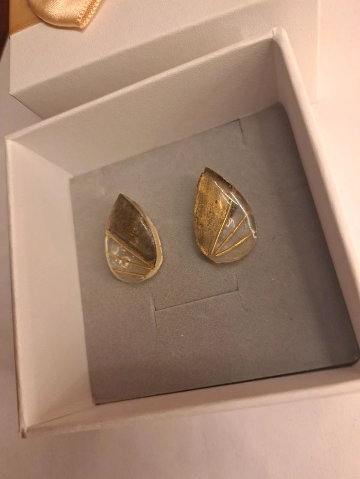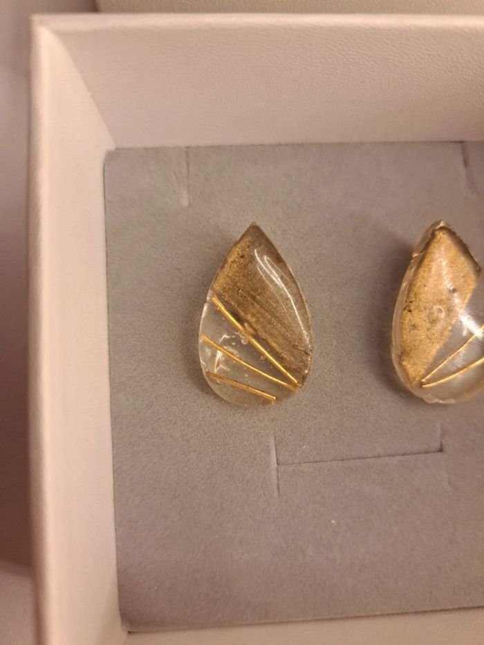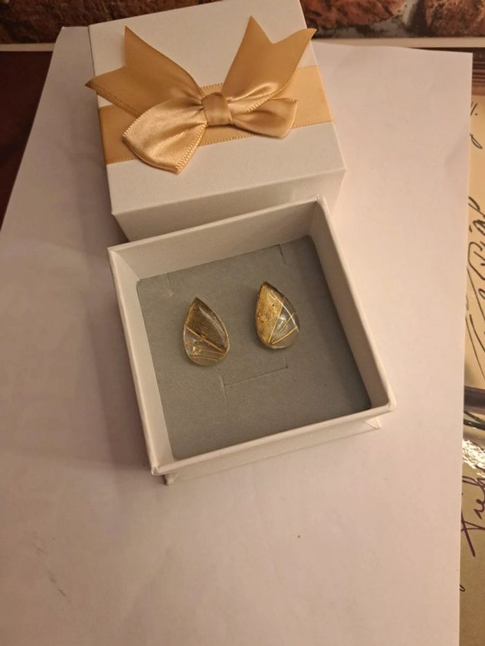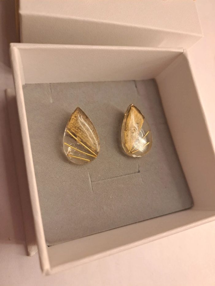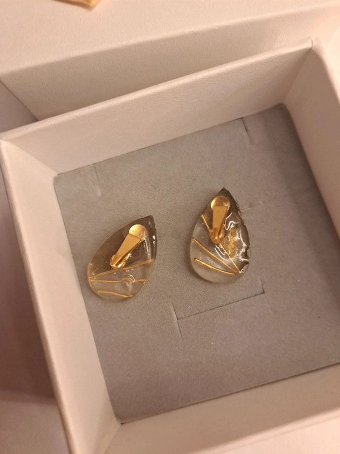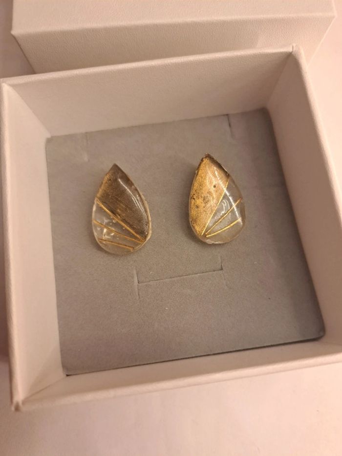 Boucles d'oreilles à clips en résine avec inclusion tiges doré dorure poudre Simple jolie original
