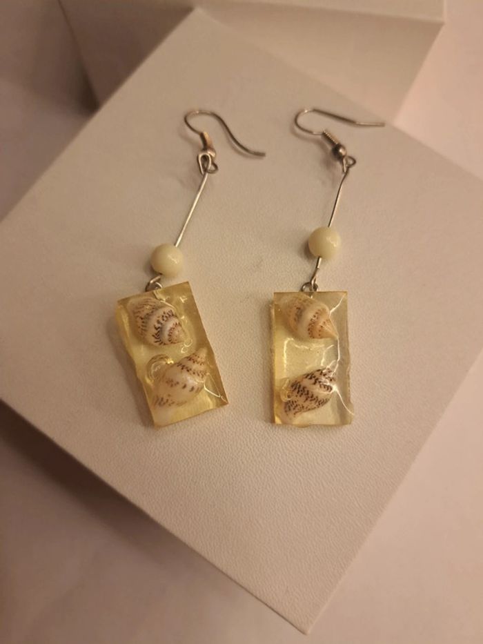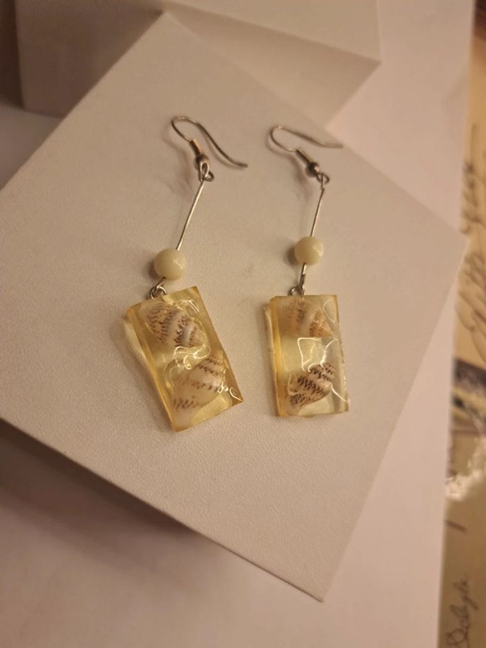 Boucles d'oreilles pendante en résine avec coquillages - photo numéro 1