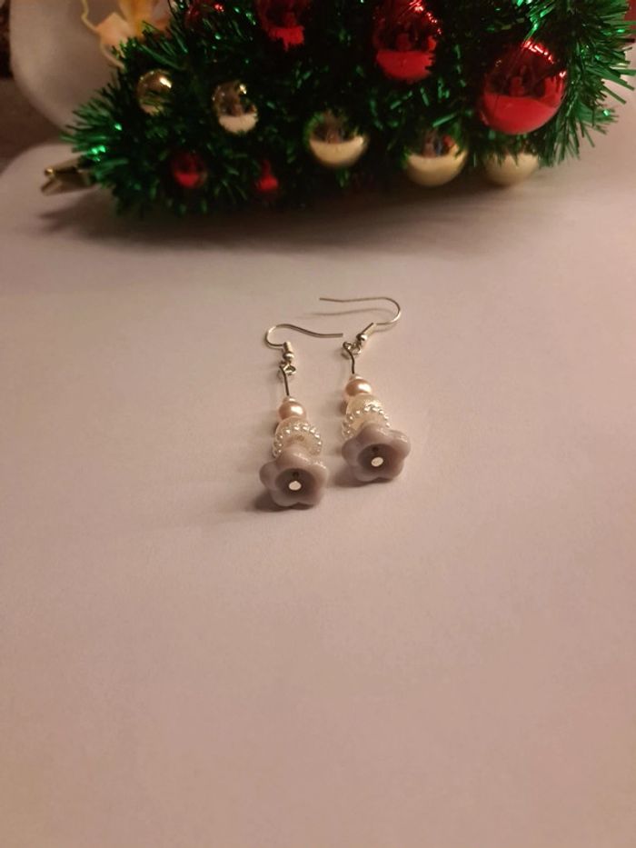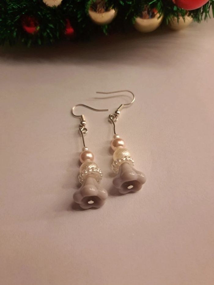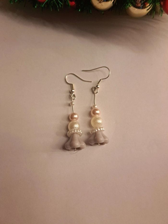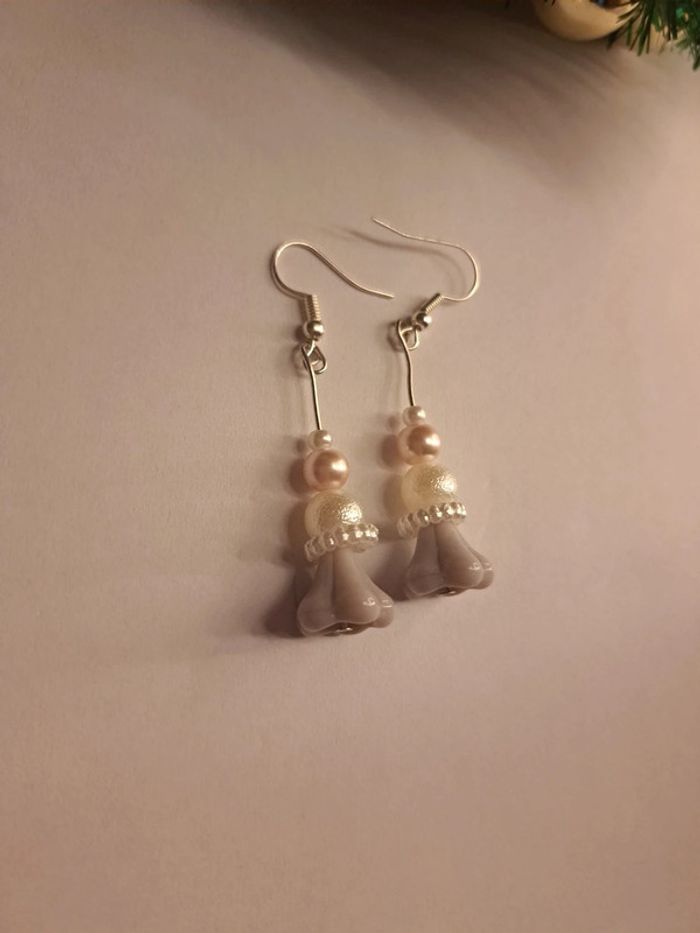Boucles d'oreilles pendante blanche violette et pêche - photo numéro 1