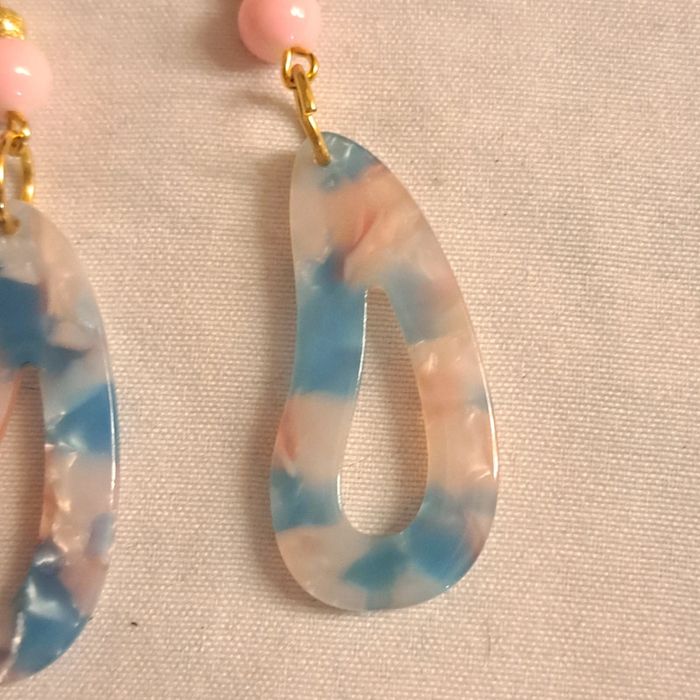 Boucles d'oreilles pendante rose et bleu - photo numéro 8
