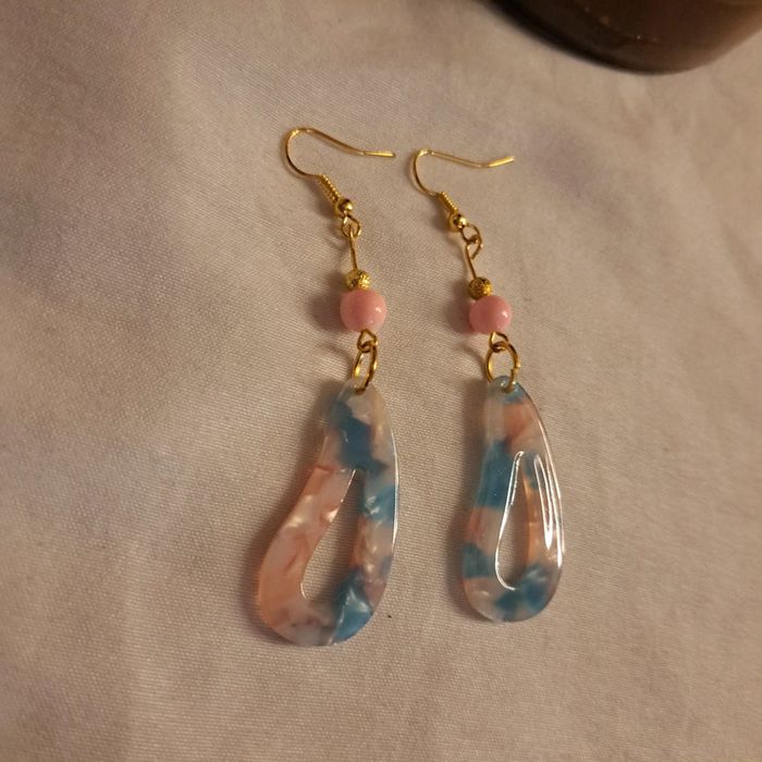 Boucles d'oreilles pendante rose et bleu - photo numéro 9
