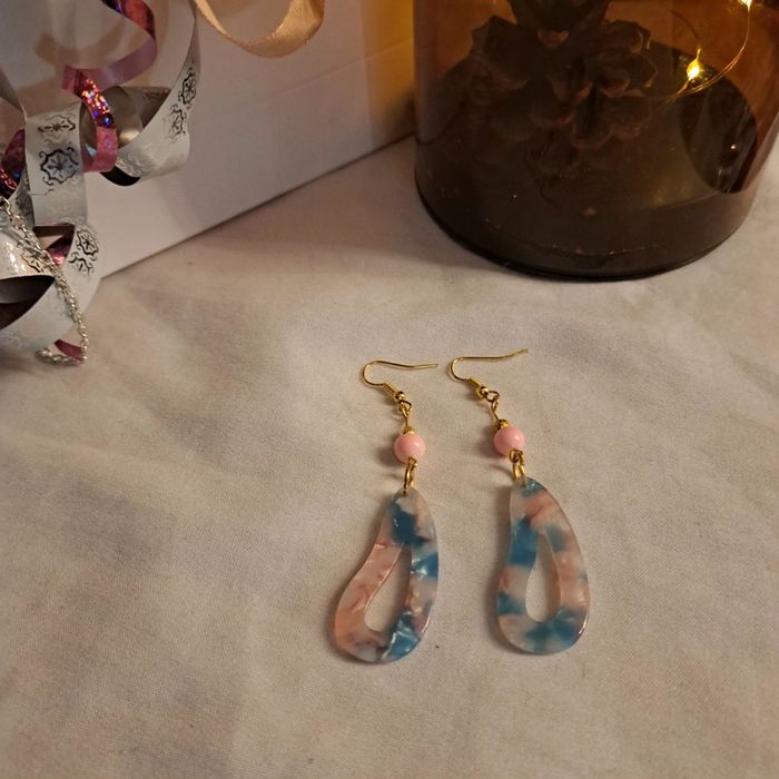 Boucles d'oreilles pendante rose et bleu - photo numéro 6