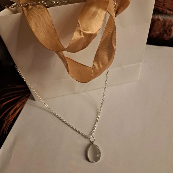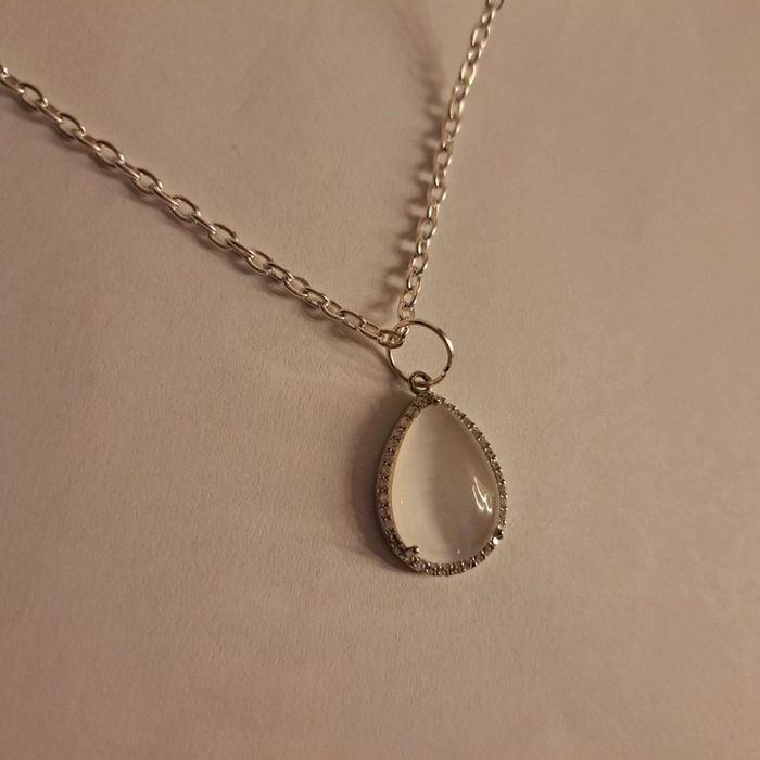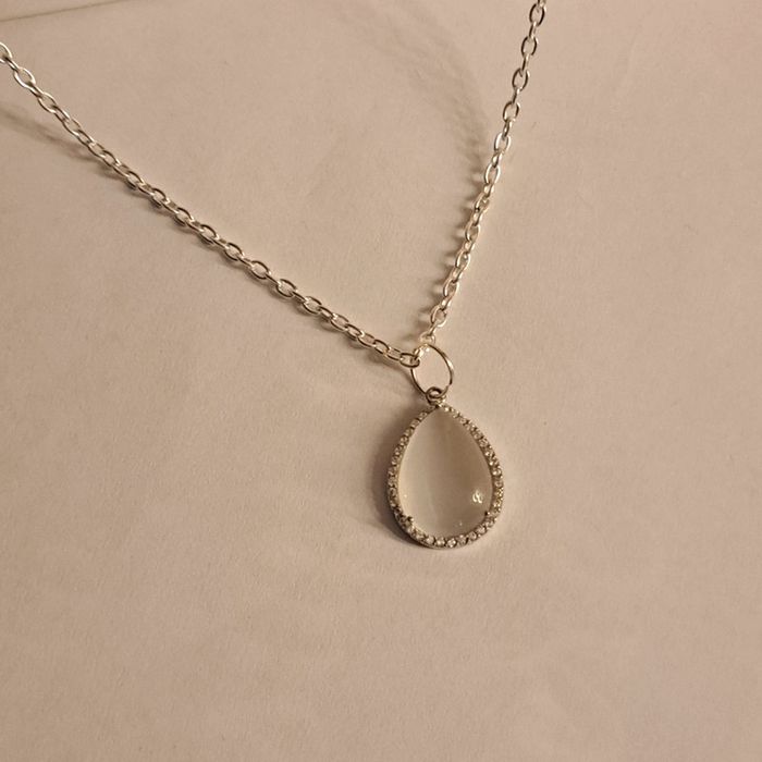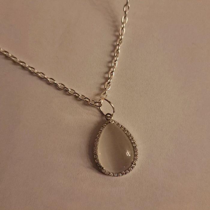 Collier acier inoxydable avec pendentif strass forme gouttes blanche oeil de chat Tout en finesse discret