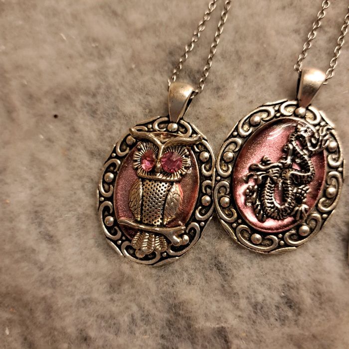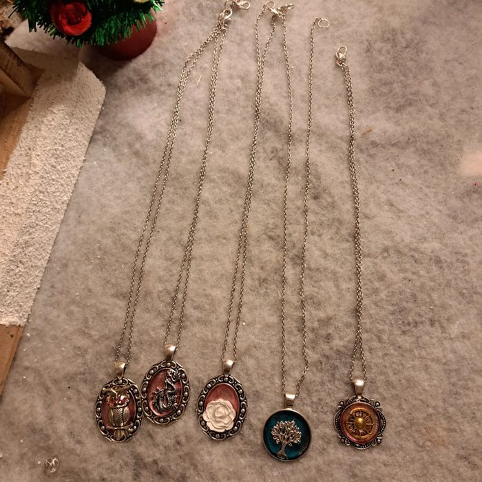 Lot de colliers argenté acier inoxydable avec pendentif multicolore petite breloques hiboux dragon 🐉 rose plâtre blanche arbres de vie petit soleil Unique