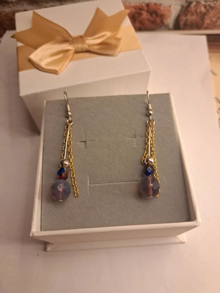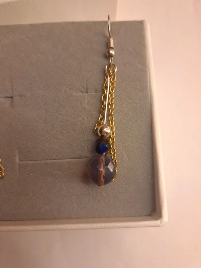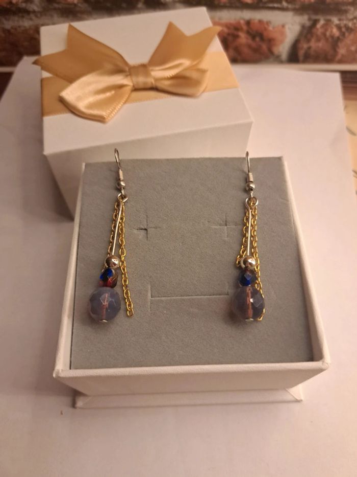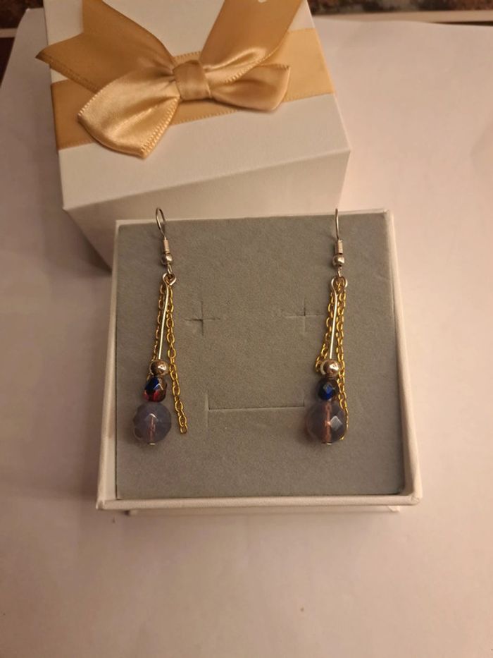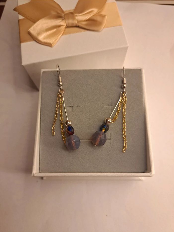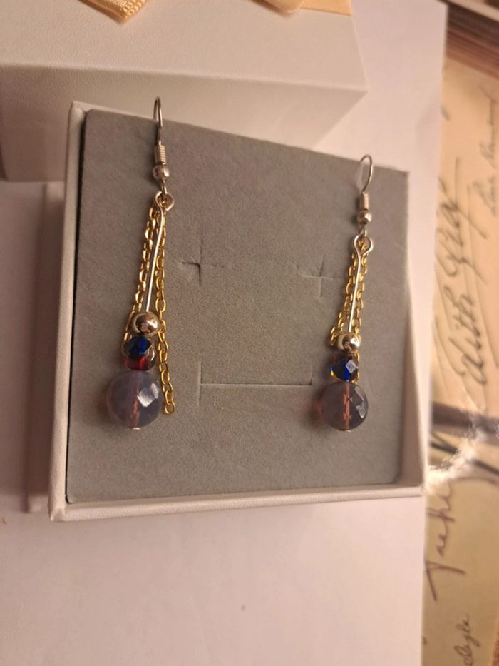 Boucles d'oreilles pendante avec perles violette foncé et clair avec perles argenté chaînette fois 2 doré Chic et élégant
