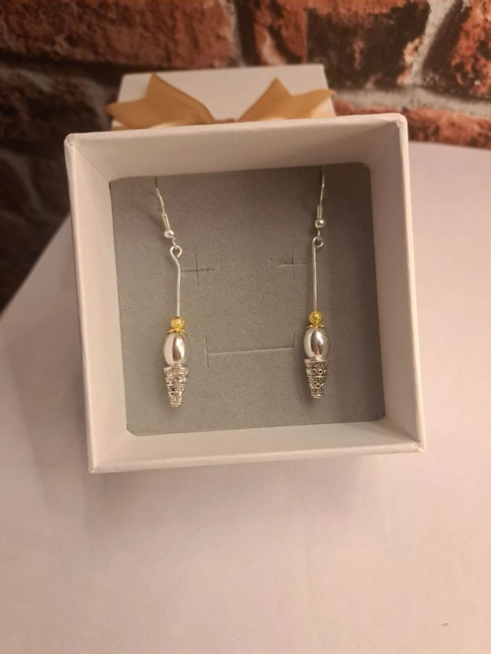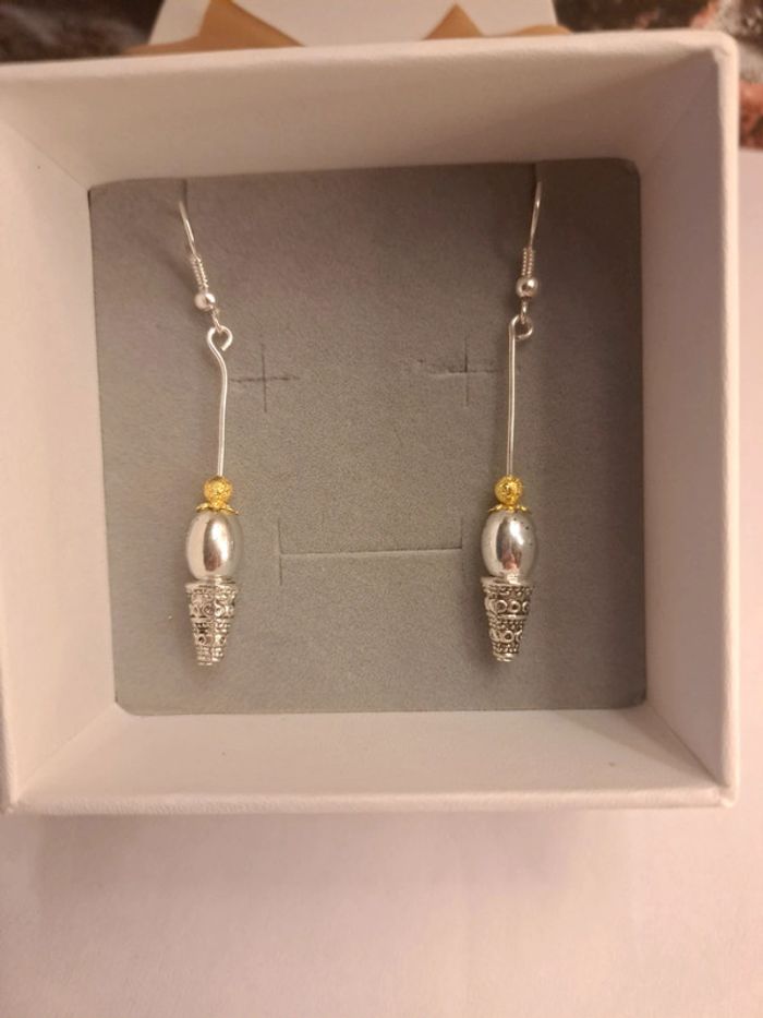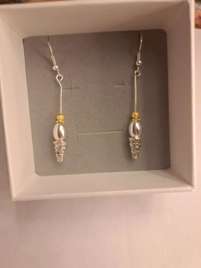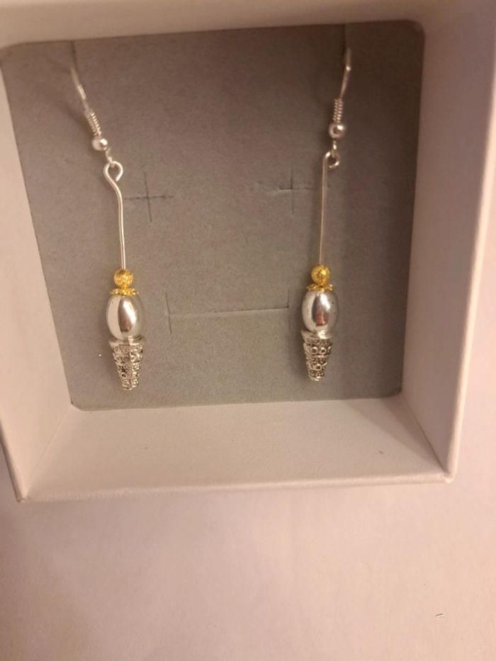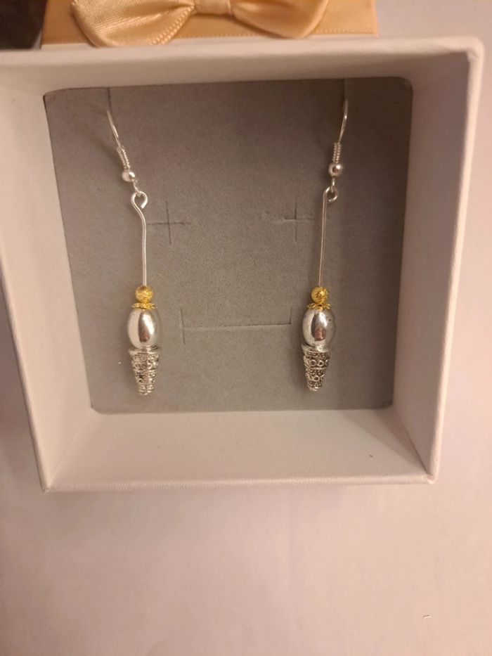 Boucles d'oreilles pendante argenté et doré - photo numéro 1