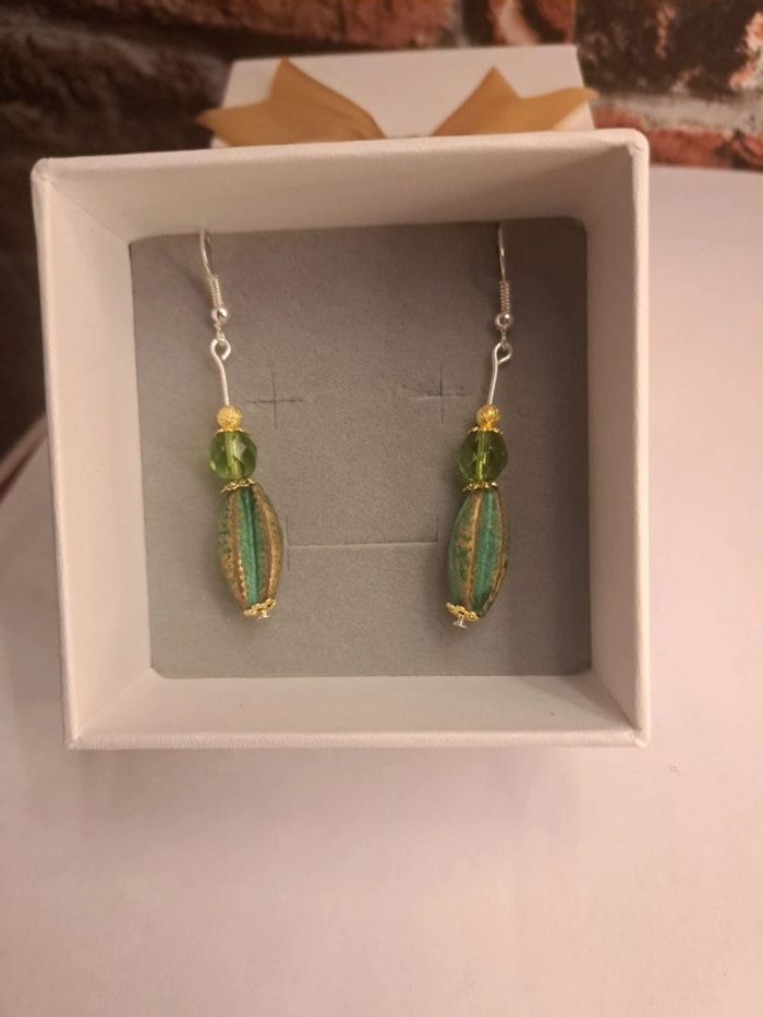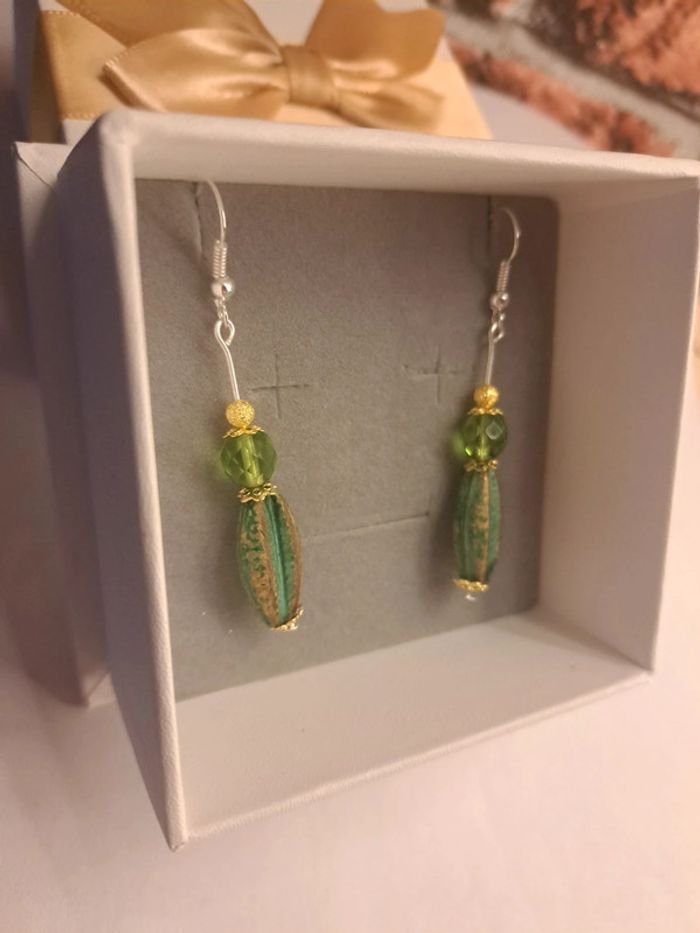 Boucles d'oreilles pendante vertes doré - photo numéro 1