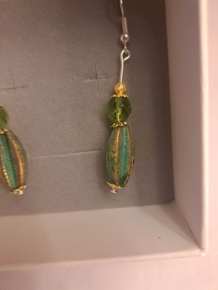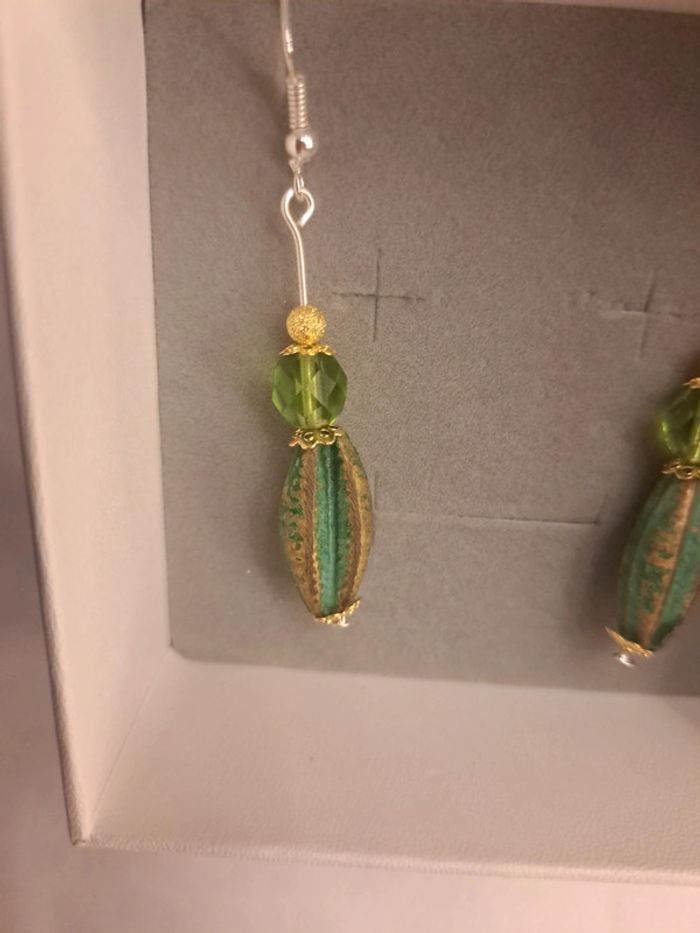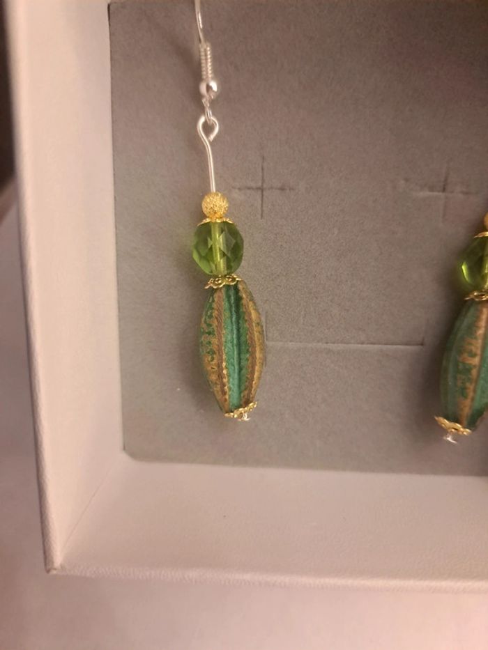 Boucles d'oreilles pendante vertes doré - photo numéro 4