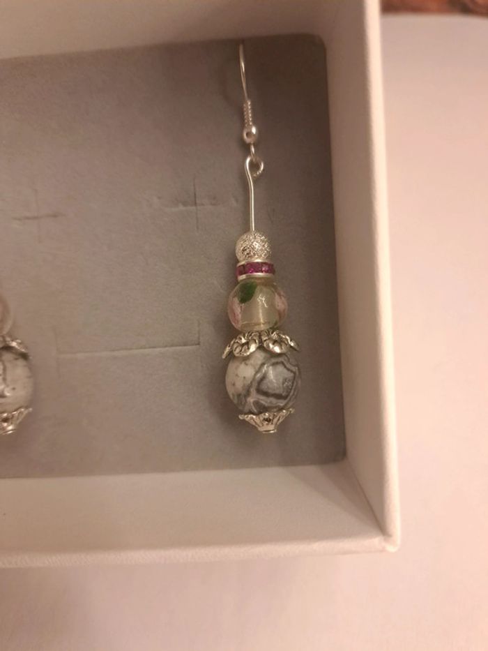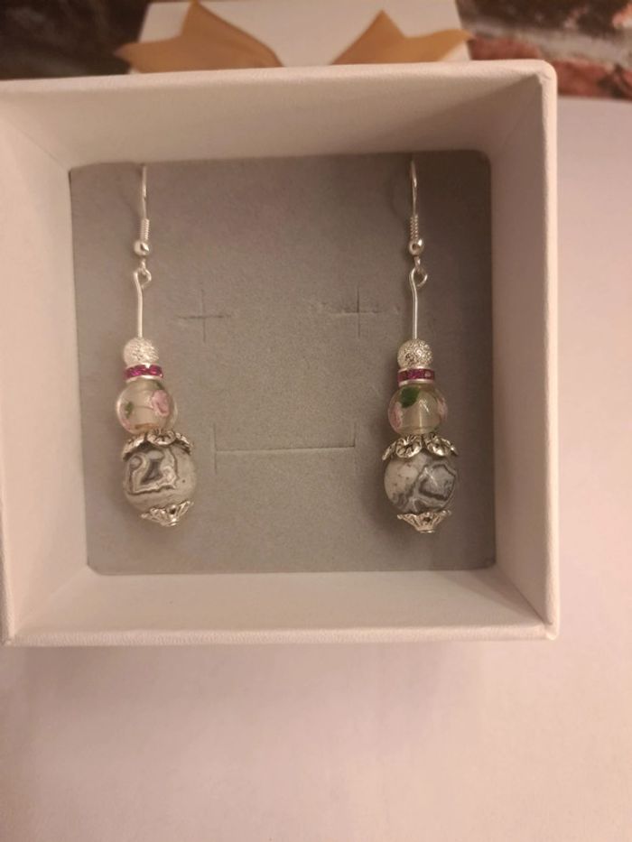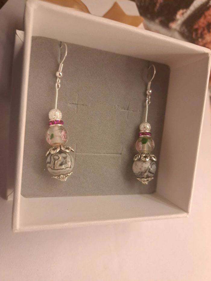 Boucles d'oreilles pendante grise rose argenté - photo numéro 1