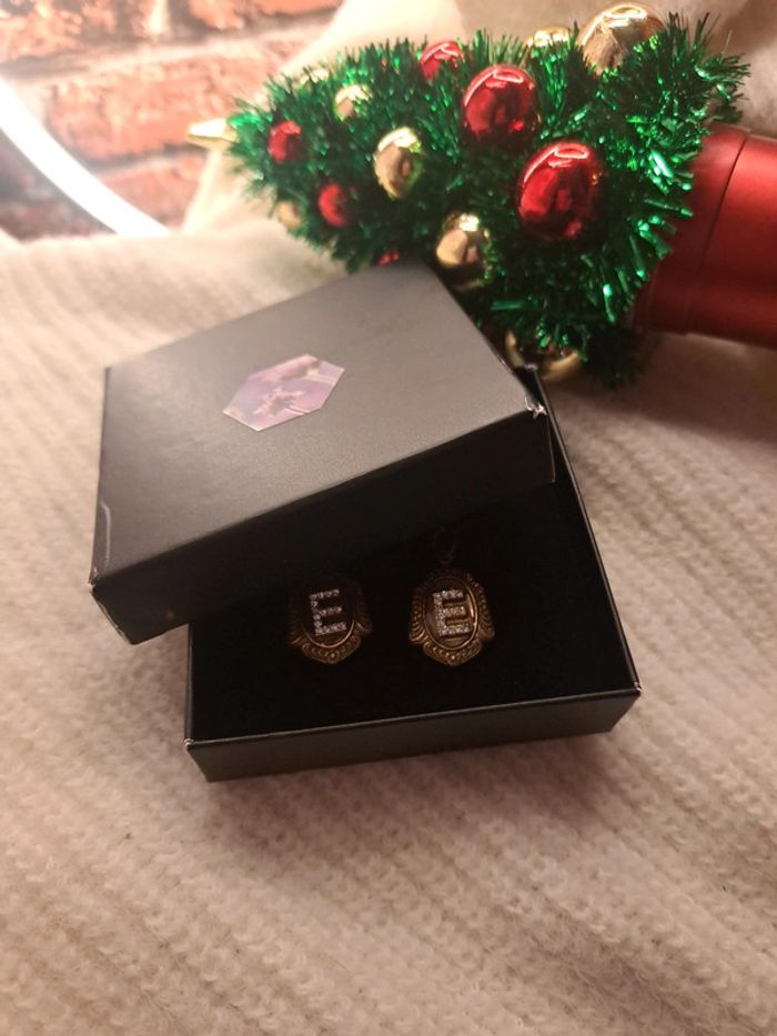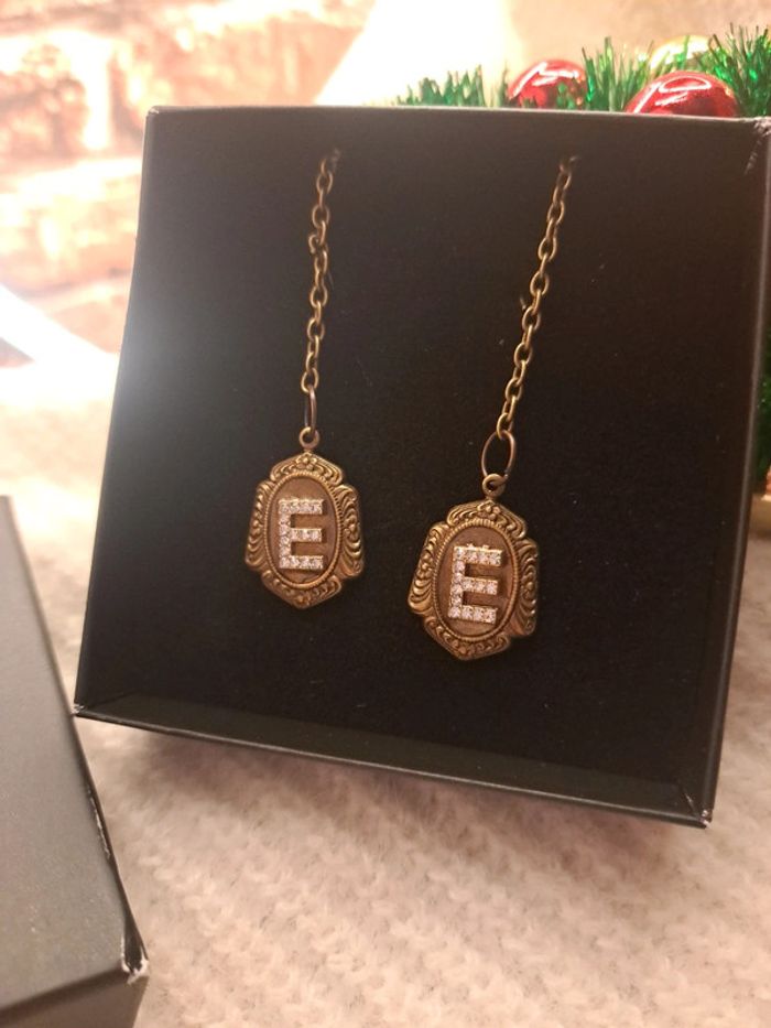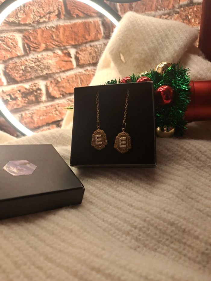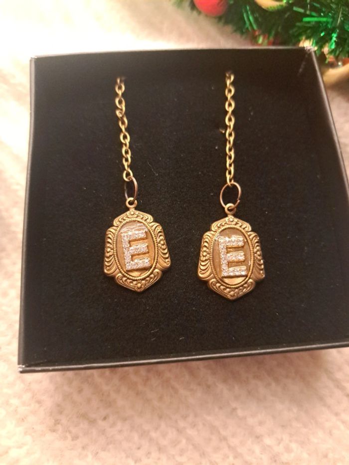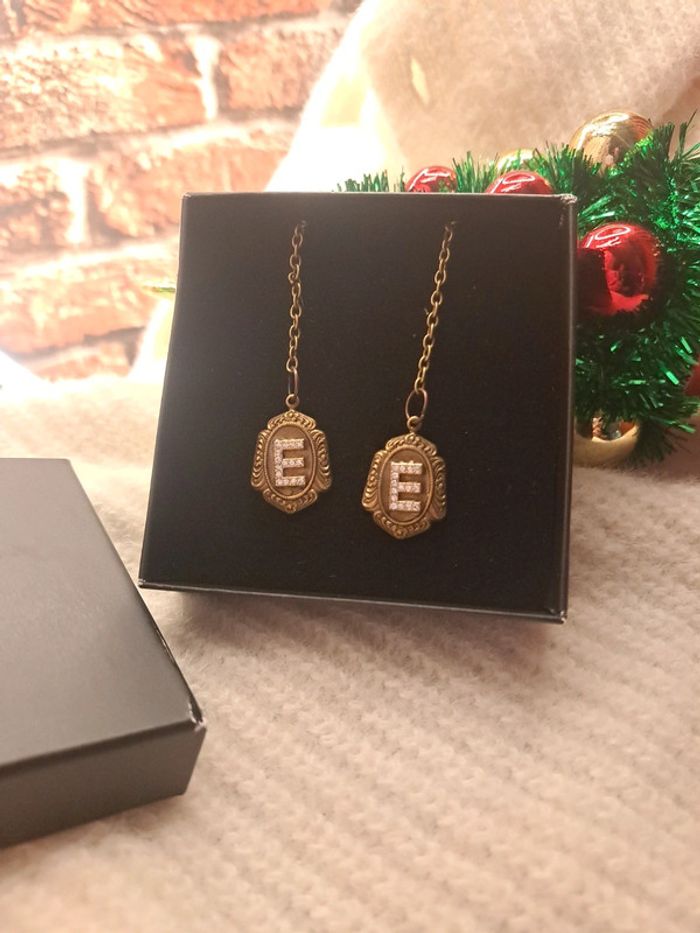 Boucles d'oreilles pendante avec initiale lettre E - photo numéro 1