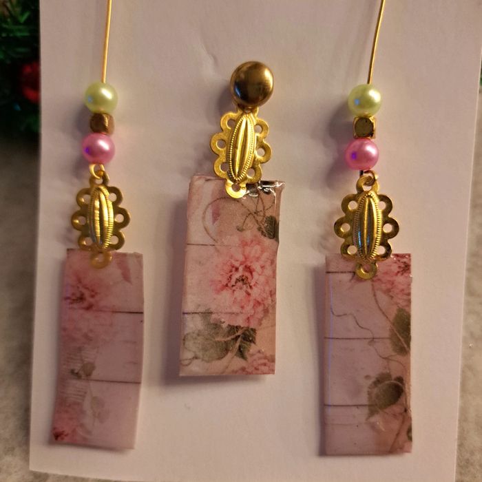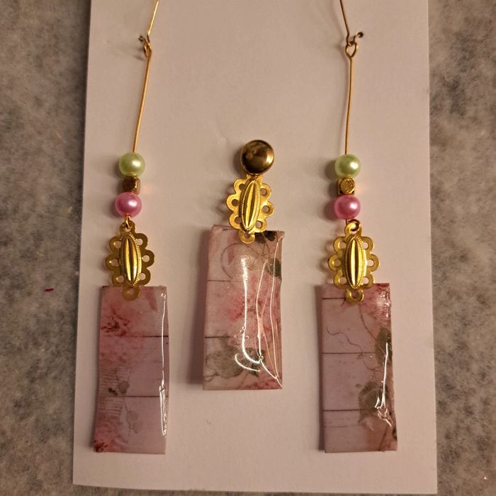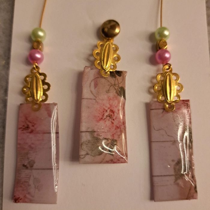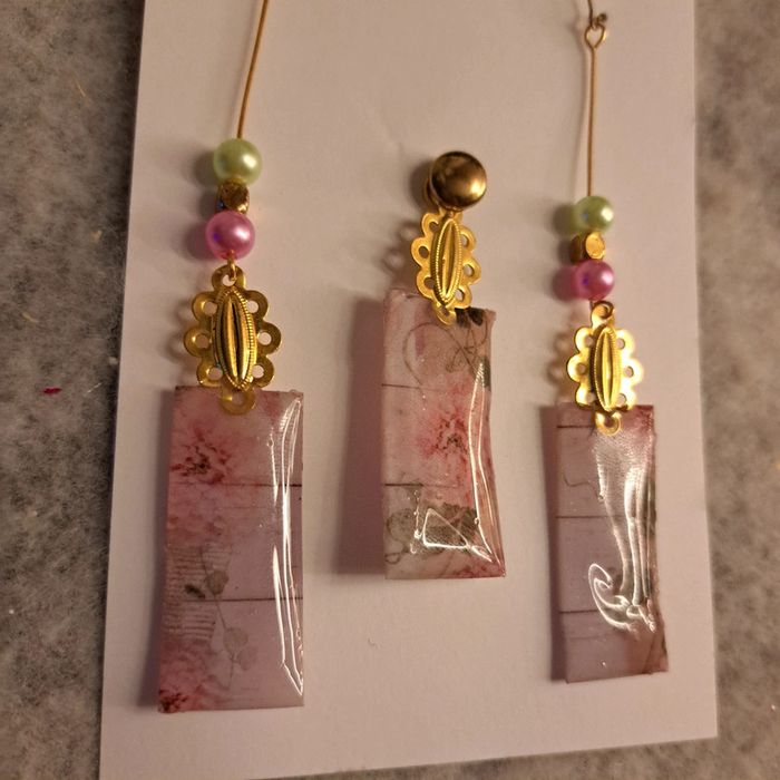 Boucles d'oreilles pendante avec pendentif assortie - photo numéro 5