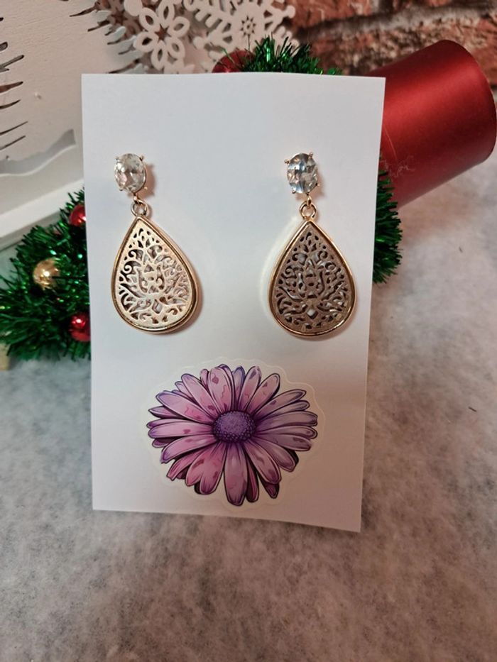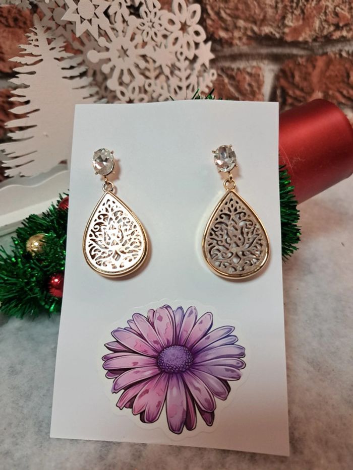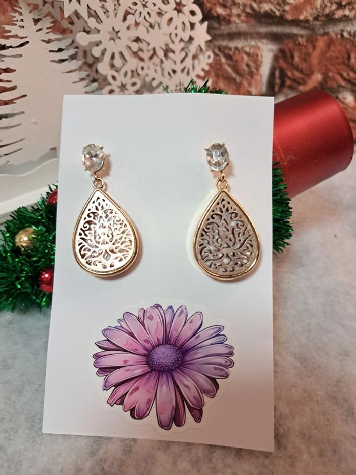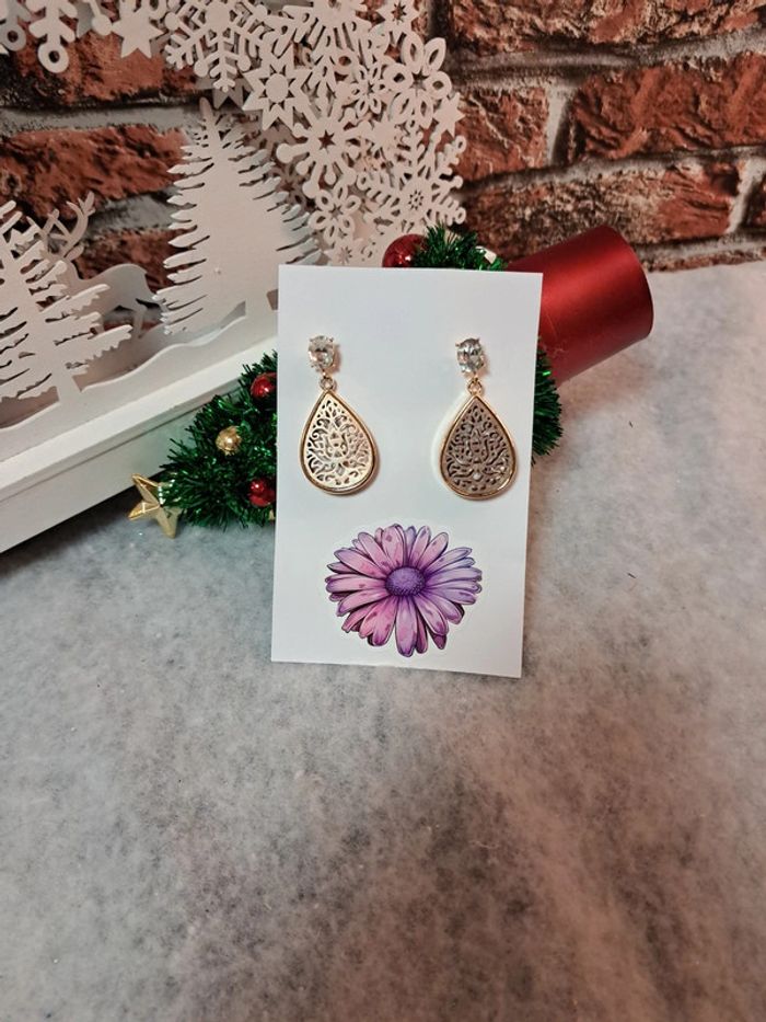 Boucles d'oreilles pendante doré - photo numéro 2