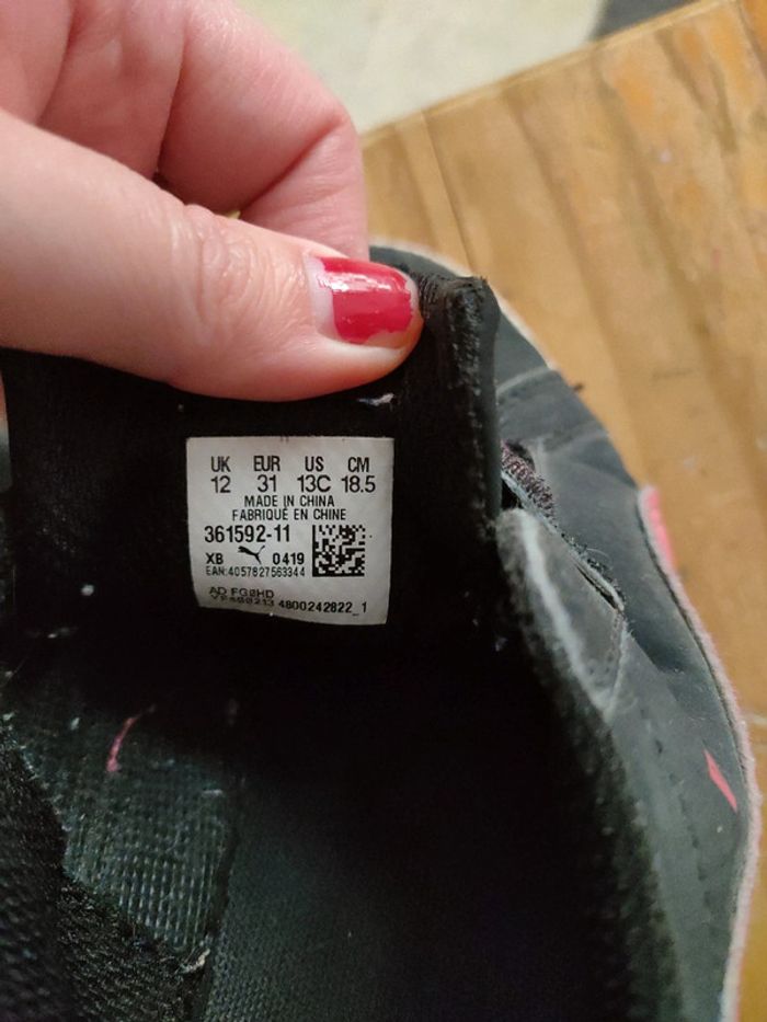 Bonjour Je vend cette paire de baskets Puma taille 31 le devant de la basket droite ce décolle un peu sur le devant voir photo (peu ce recoller)