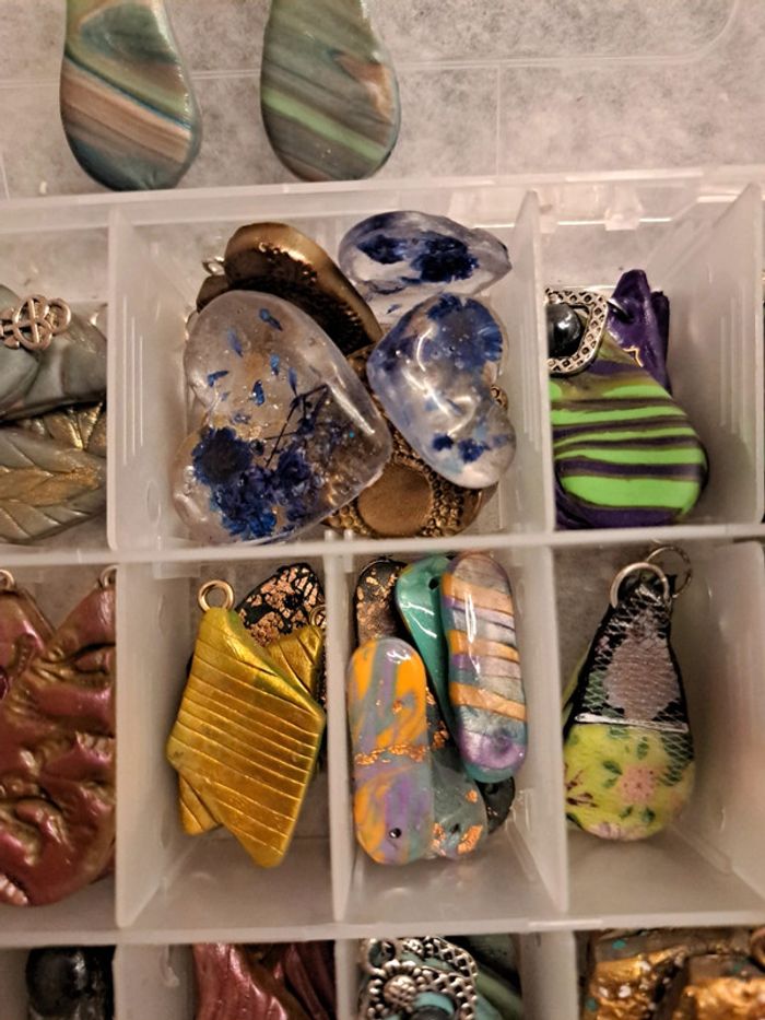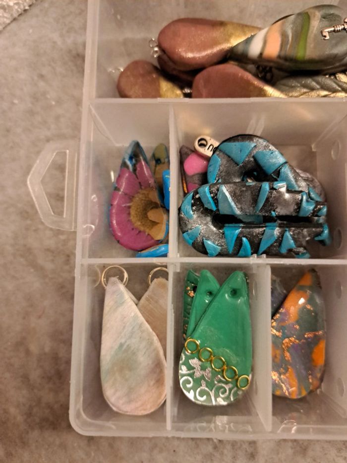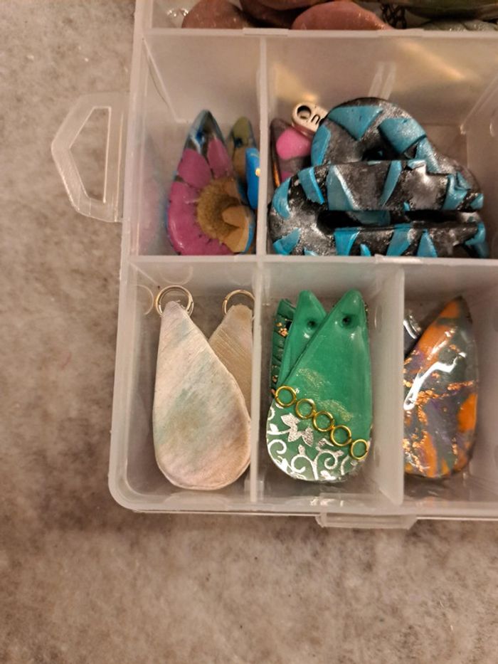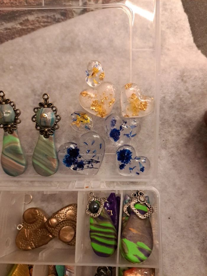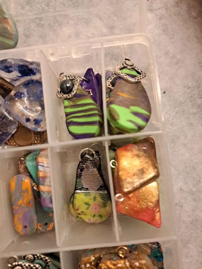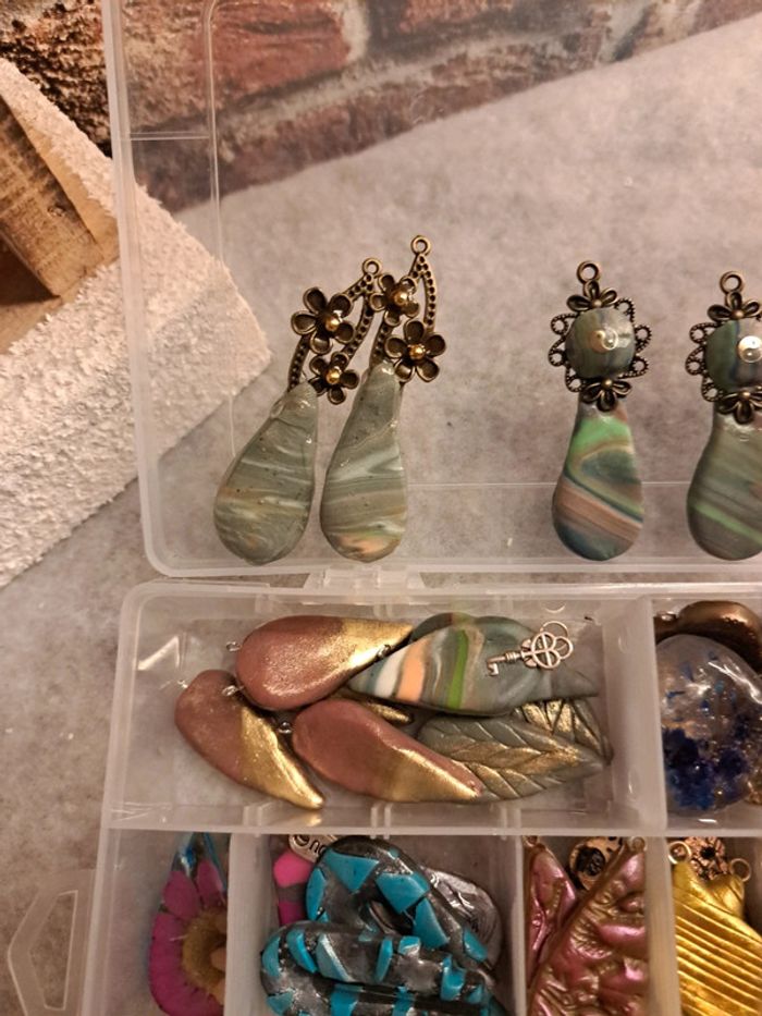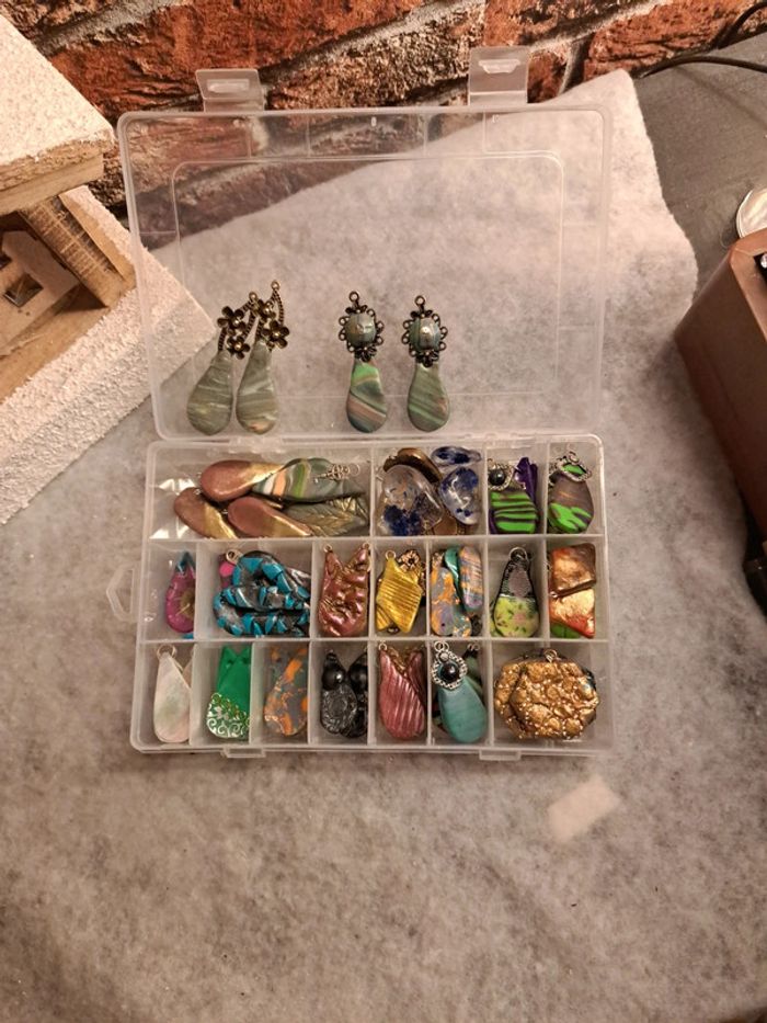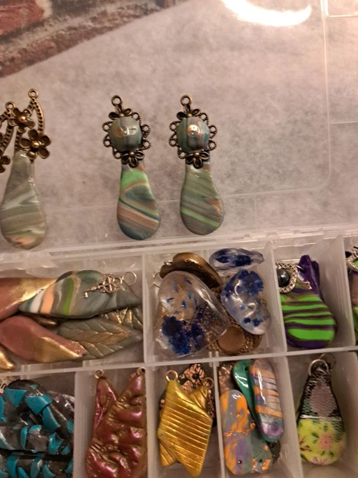 Lot de pendentifs ou boucles d'oreilles pendantes artisanales multicolore Chic et élégante magnifiques possible de trouvé des petites choses à recoller rien de bien méchant Pour réaliser de magnifiques créations N'hésitez pas à faire une offre