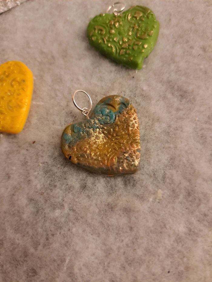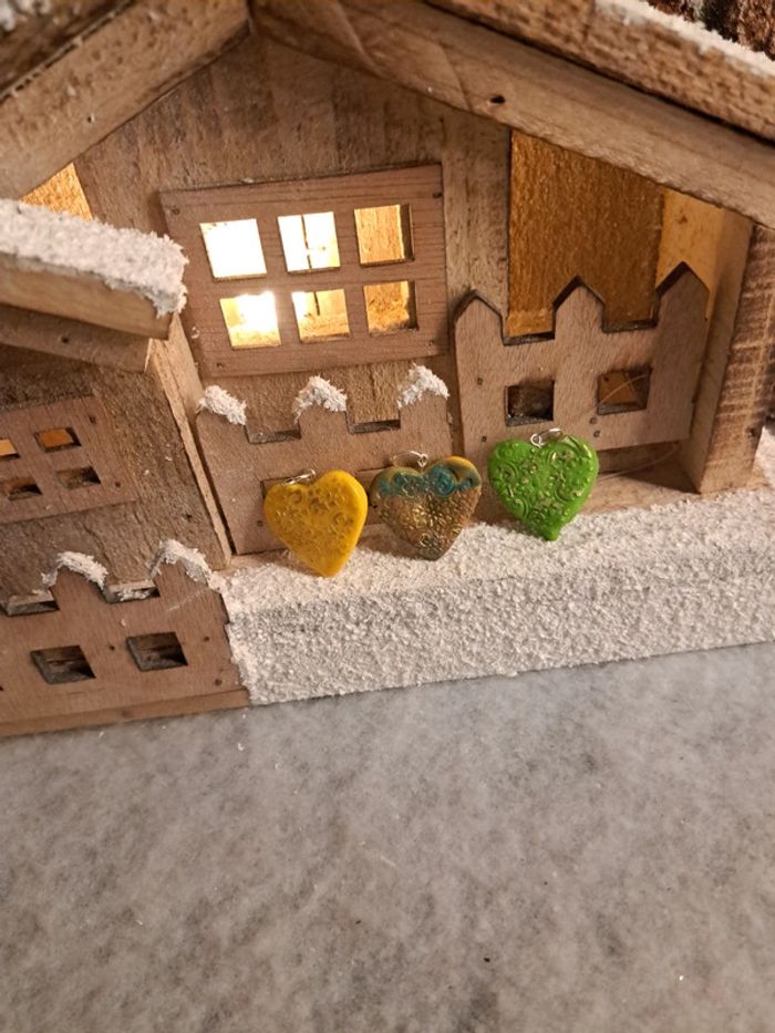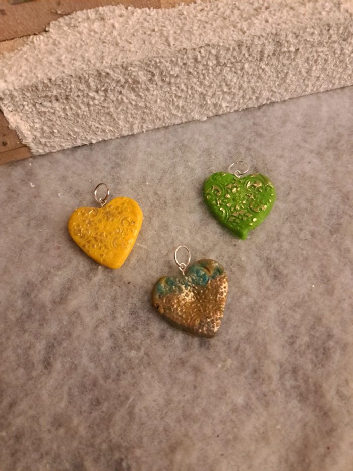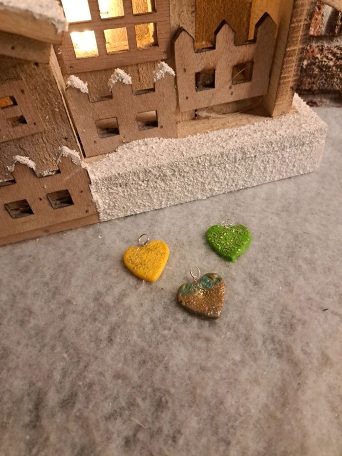 Lot de 3 pendentif formes cœur multicolore pâte polymere avec poudre doré bronze Petit côté bohème glamour