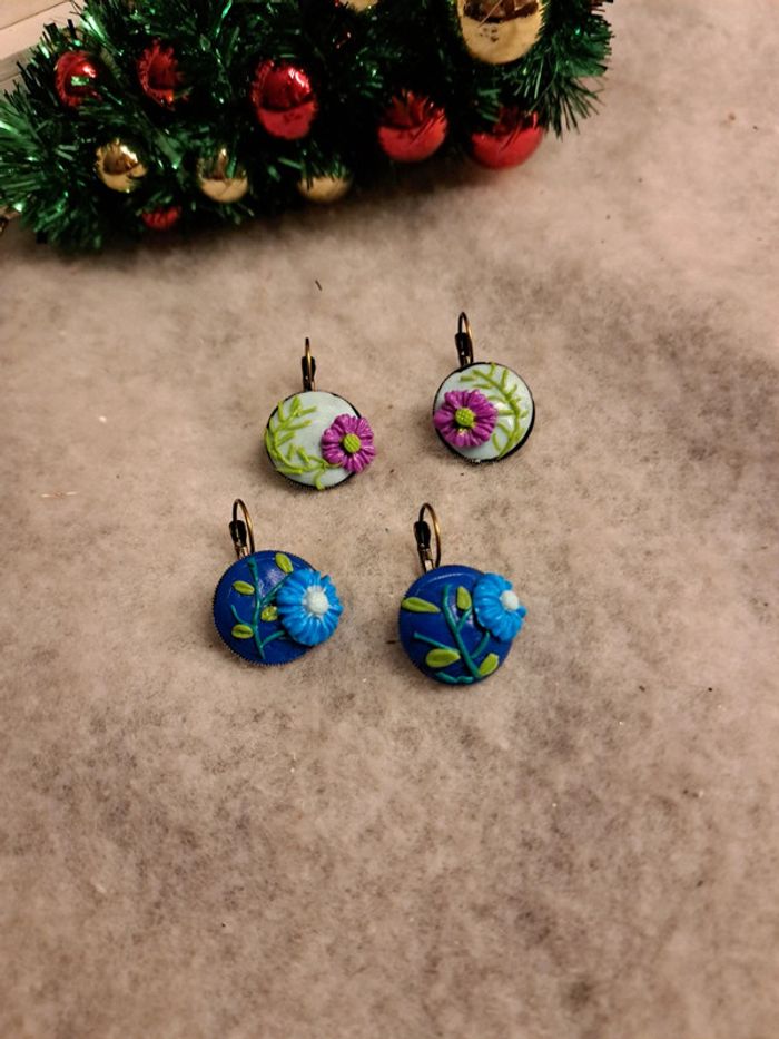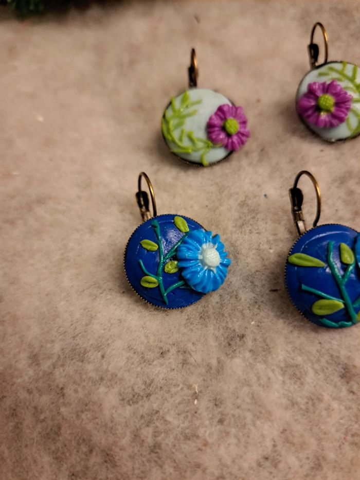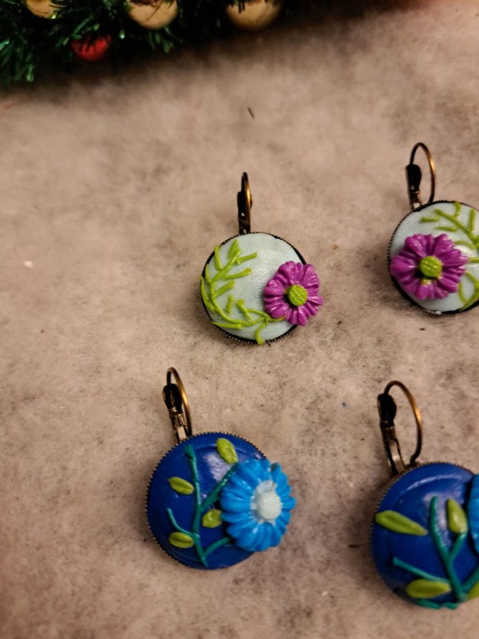 Boucles d'oreilles avec pâte polymere multicolore - photo numéro 4